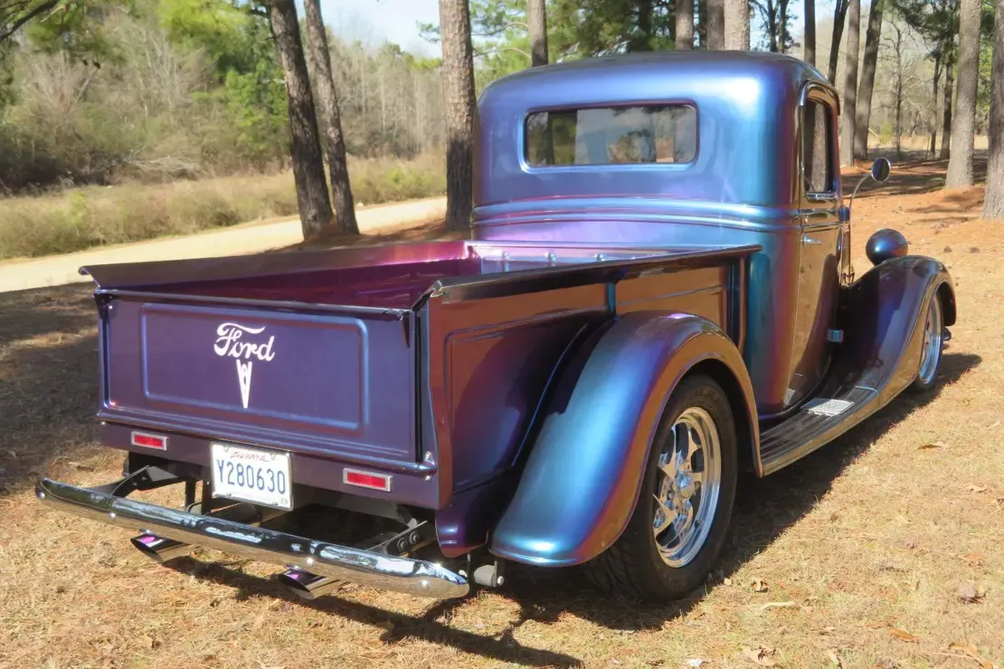 A Chevy motor, some beautiful purple paint, and a set of chrome wheels make this truck an awesome purchase for any vintage truck lover.