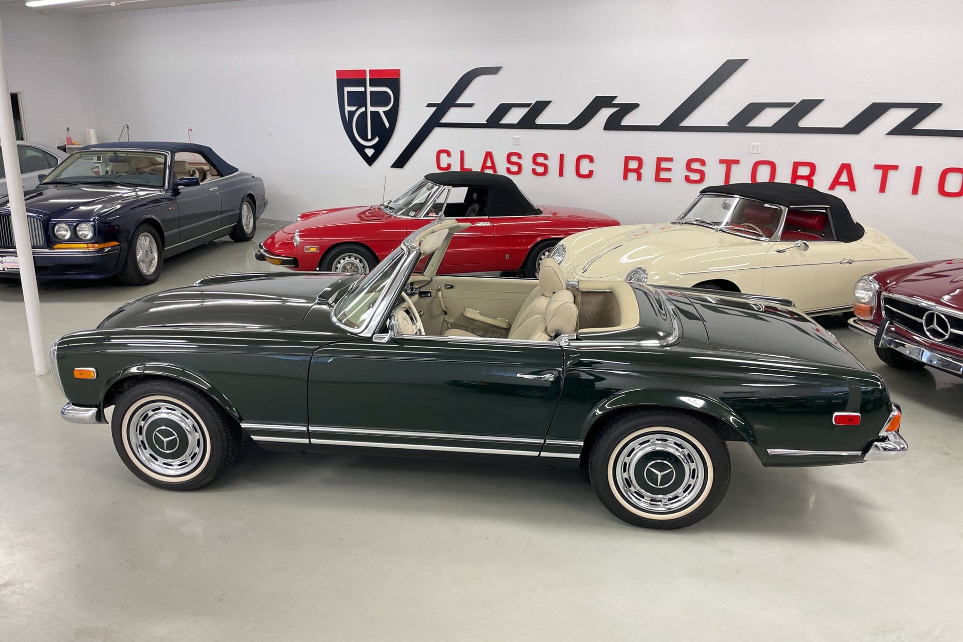 Just imagine cruising a mountain byway, the wind gently tousling your hair, and the rich, classic scent of leather filling the air. This is more than just a classic car; it's an invitation to romance, nostalgia, and timeless elegance. This 1970 Mercedes-Benz 280SL (1970 Mercedes-Benz 280SL), painted in a deep, enchanting Dark Olive, embodies the perfect blend of sophistication and charm. The exquisite Parchment interior complements the exterior's allure, offering a serene and luxurious sanctuary.
