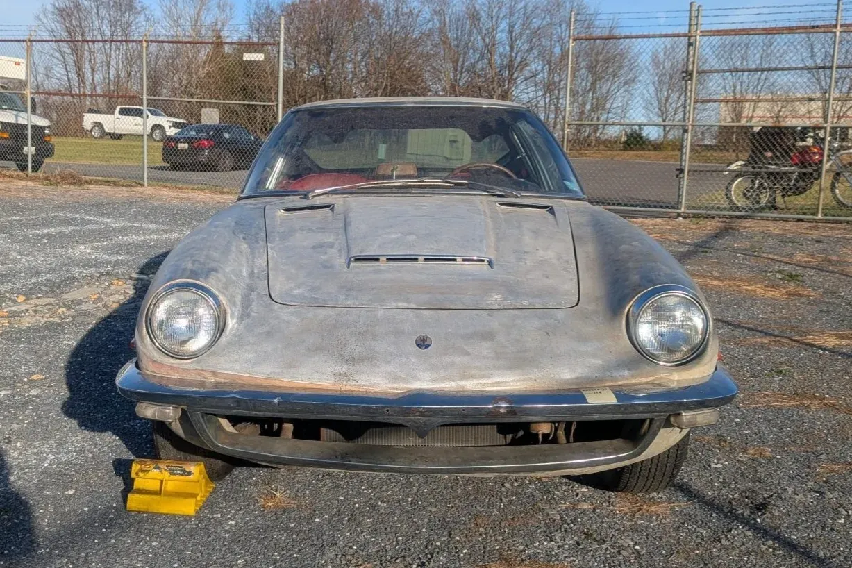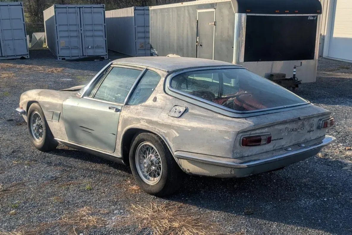 A partially disassembled 1967 Maserati Mistral 4000 alloy coupe is back on the market after years of inactivity, offered as a non-running restoration project with a documented ownership trail.