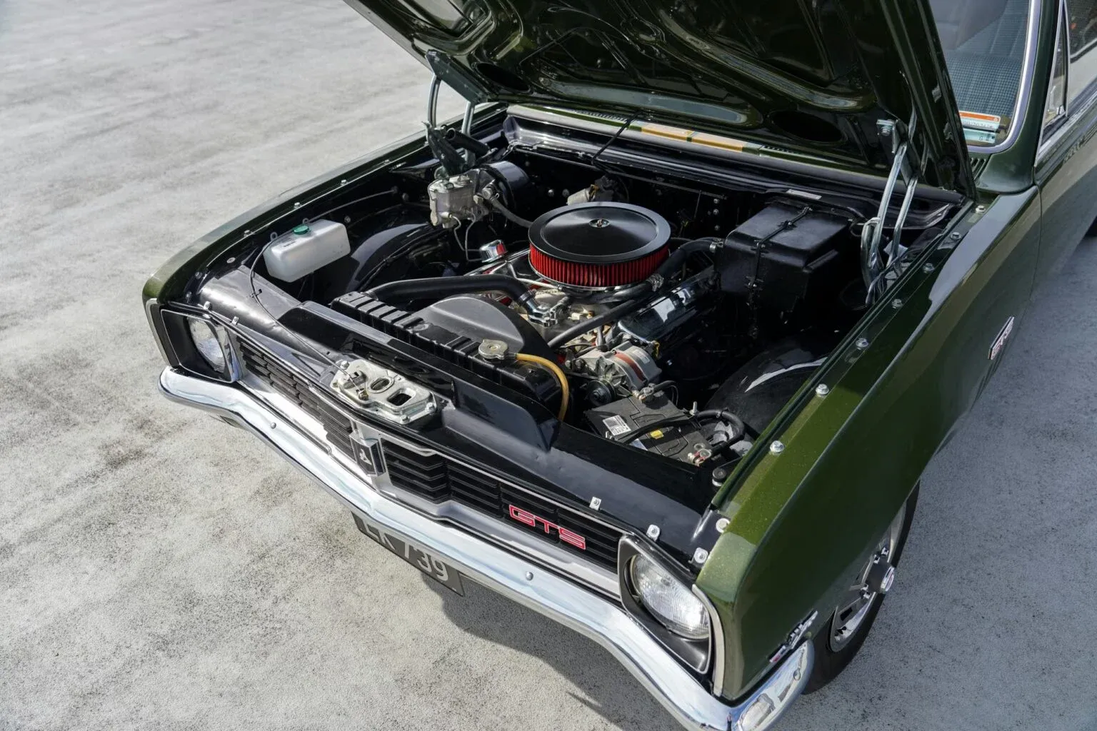 The HT example now for sale is fitted with Holden’s in-house developed 308 cubic inch, 5.0-liter V8 engine, introduced in 1969. The 90-degree V8 featured pushrod-actuated valves and cross-flow heads, offering a lighter and more locally engineered alternative to the earlier Chevrolet-sourced 327 cubic inch V8. The engine became a flagship powerplant for Holden and remained central to the brand’s performance identity for decades.