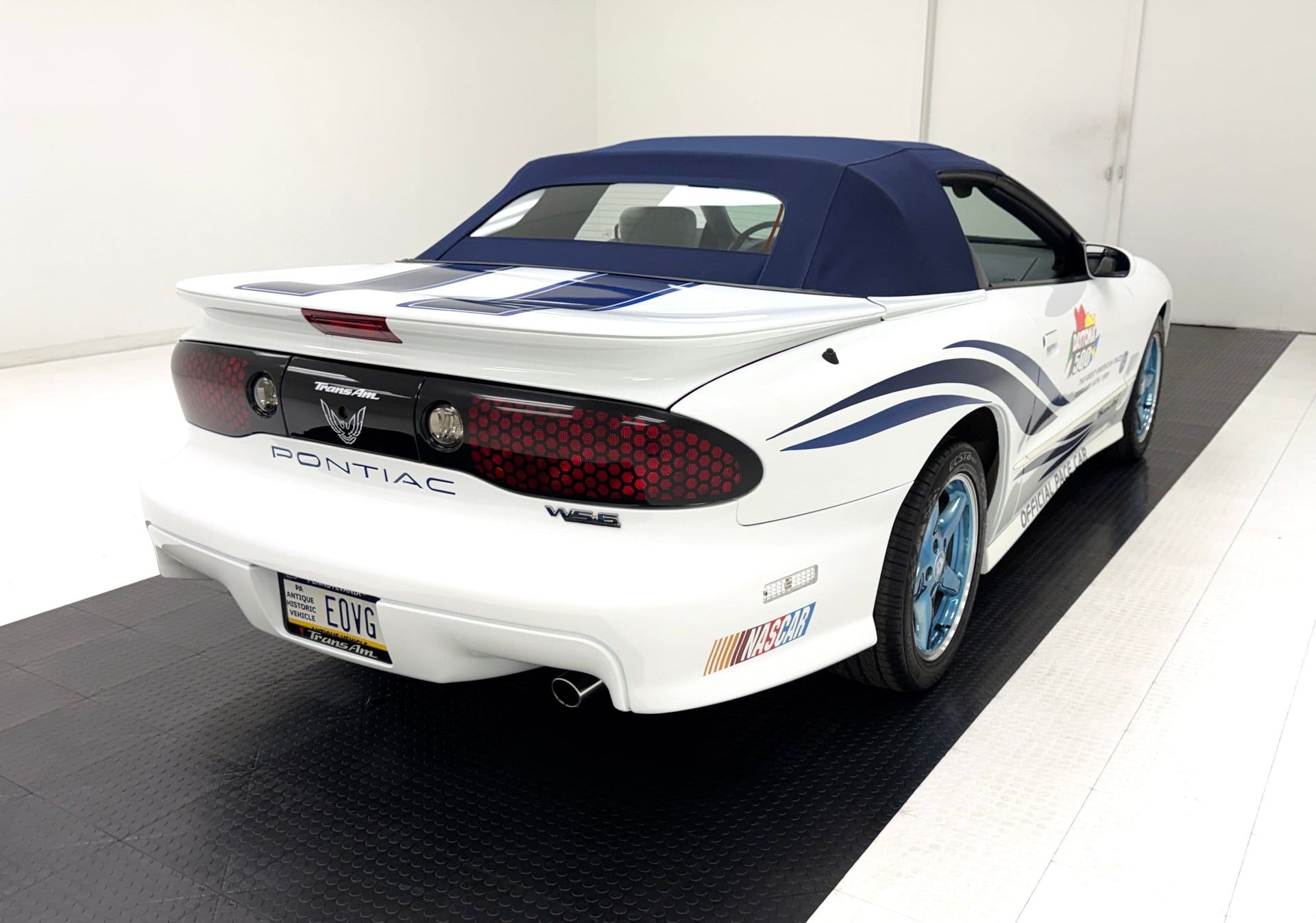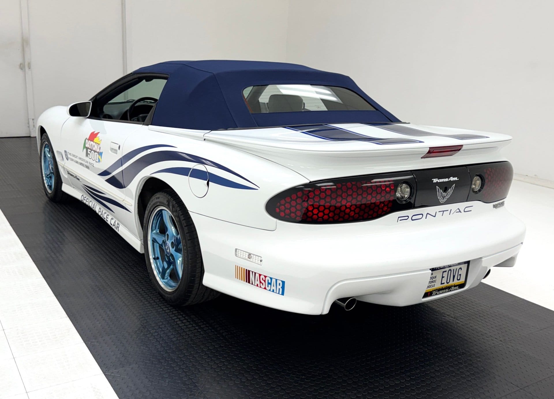 Pontiac’s tradition of marking milestones with distinctive Trans Am editions dates back decades, with anniversary variants released at regular intervals beginning in 1979. By 1999, the 30th Anniversary model paid tribute to the original 1969 Trans Am through its signature Arctic White exterior and contrasting blue accents. This particular example goes further by replicating the design of the cars used during the 1999 Daytona 500, incorporating event-specific graphics and visual elements tied to its pace car role.
