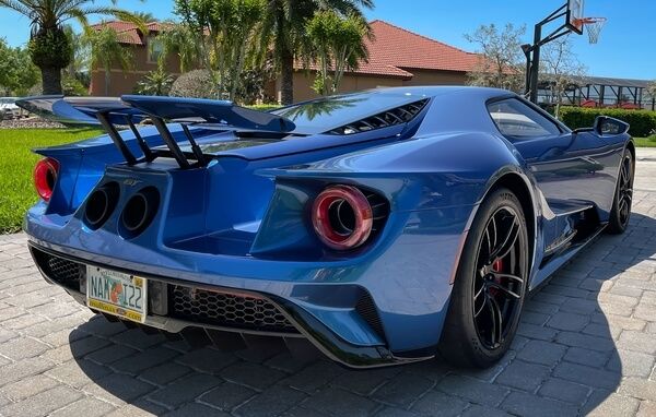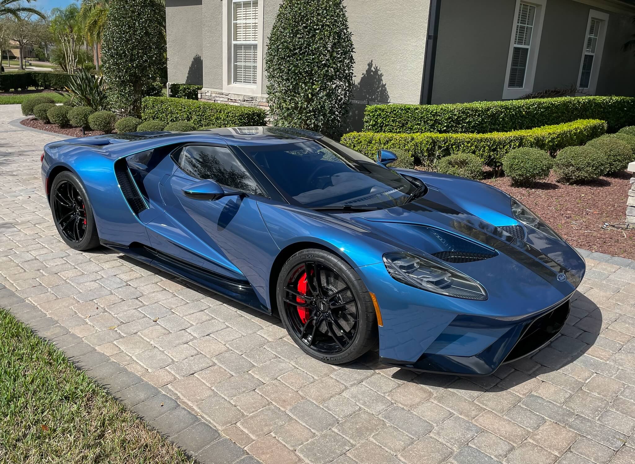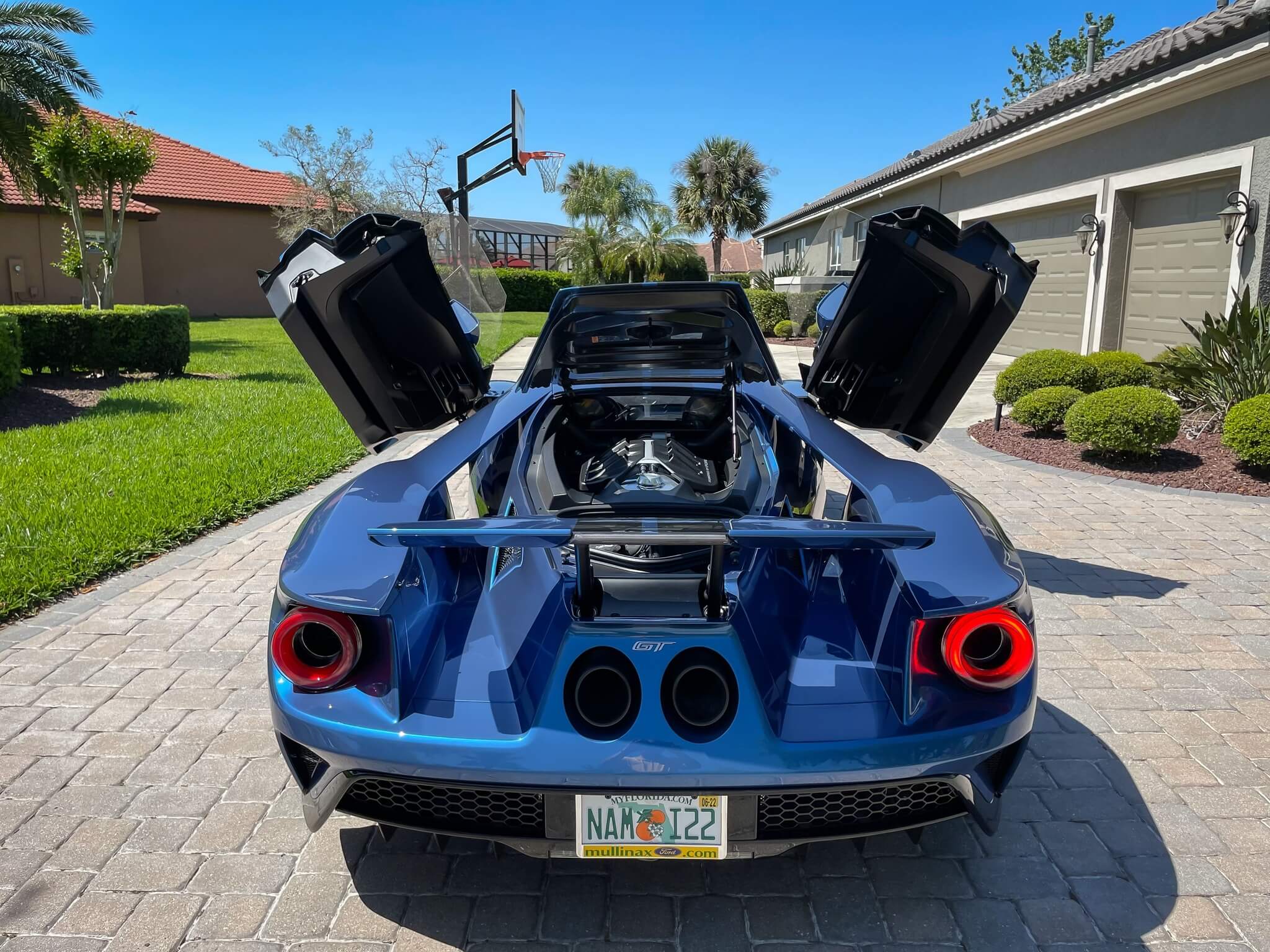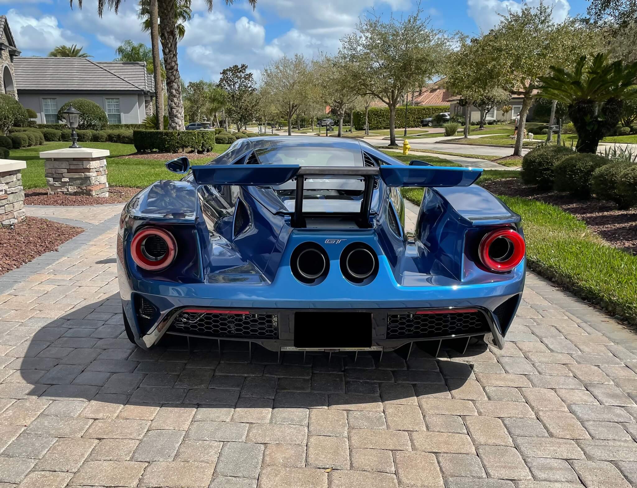 This is a 2019 Ford GT in a sleek Liquid Blue which seems to form around the curvaceous body lines like water around the shoreline. The exterior was designed to combine the best of the late '60s racer that we all know and love with the styling of a modern-day supercar. The first you might notice is this car's posterior, which boasts a powerful engine under a sheet of slanted glass like many sports cars of our time. Of course, we all know what powered the previous generations. But how does this car put its power to the ground?