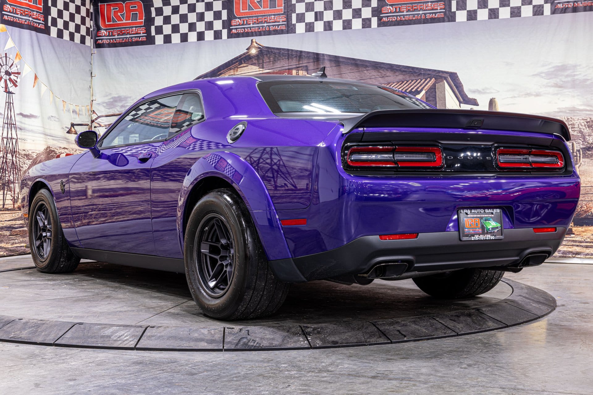 A 2023 Dodge Challenger SRT Demon 170 finished in Plum Crazy is being presented as a highly preserved example of Dodge’s most extreme factory-built muscle car. Designated as Demon 170 No. 2505 and carrying just 25 original miles, the vehicle remains in essentially as-delivered condition, complete with factory protective coverings still in place on the seats and interior trim.