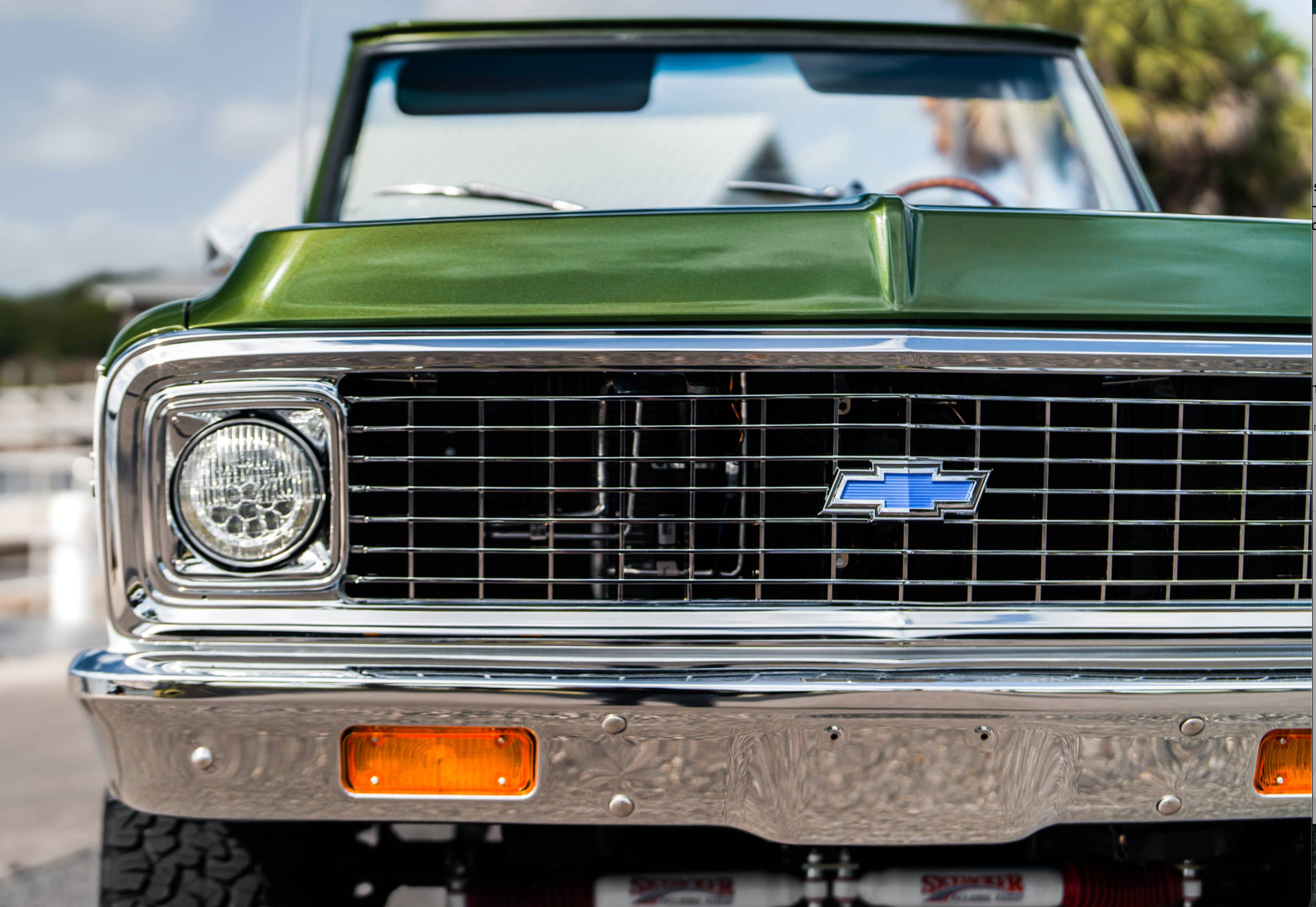 This particular build features a period-inspired two-tone paint scheme combining Chevy Dark Olive Poly and Frost White, accented by a classic side stripe. Inside, the cabin blends vintage styling with modern upgrades, including buffalo-vinyl seating paired with distinctive green houndstooth inserts. Updated climate controls, a modern audio system, and digital gauges enhance everyday usability without compromising the vehicle’s retro appeal.