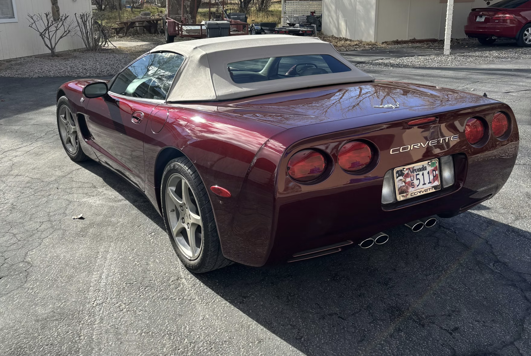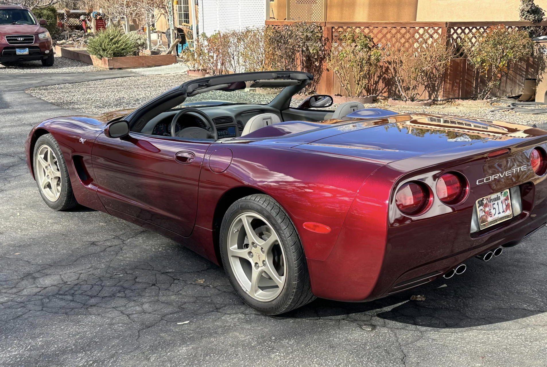 The 2003 model year was significant for Chevrolet, marking 50 years since the Corvette debuted in 1953. To commemorate the milestone, Chevrolet introduced the 50th Anniversary Edition, which included unique cosmetic and mechanical upgrades. This convertible is finished in Anniversary Red, a special paint featuring aluminum-oxide flakes beneath a tinted clear coat, and rides on color-coordinated aluminum wheels exclusive to the package.
