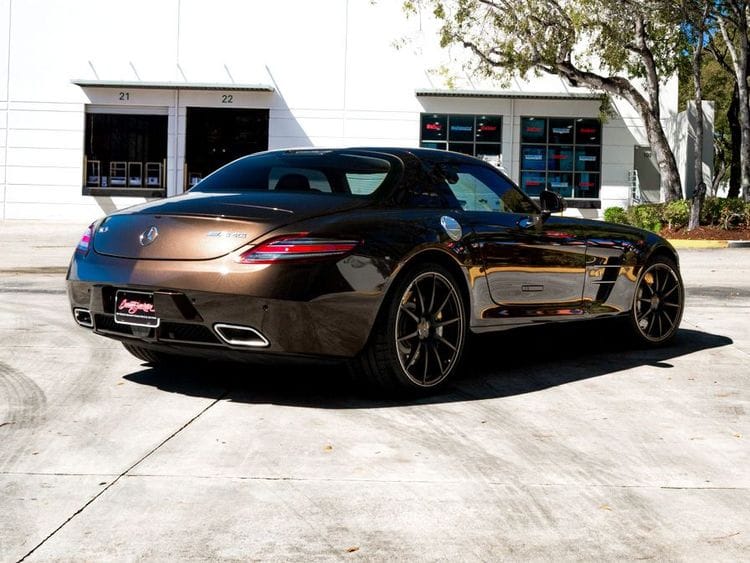 Inside, the SLS AMG reflects a balance of luxury and performance. Two-tone Designo-style seating in Mocha Brown, along with carefully selected materials, creates a cabin tailored for both comfort and driver engagement. Controls are oriented toward the driver, reinforcing the car’s performance-focused identity.