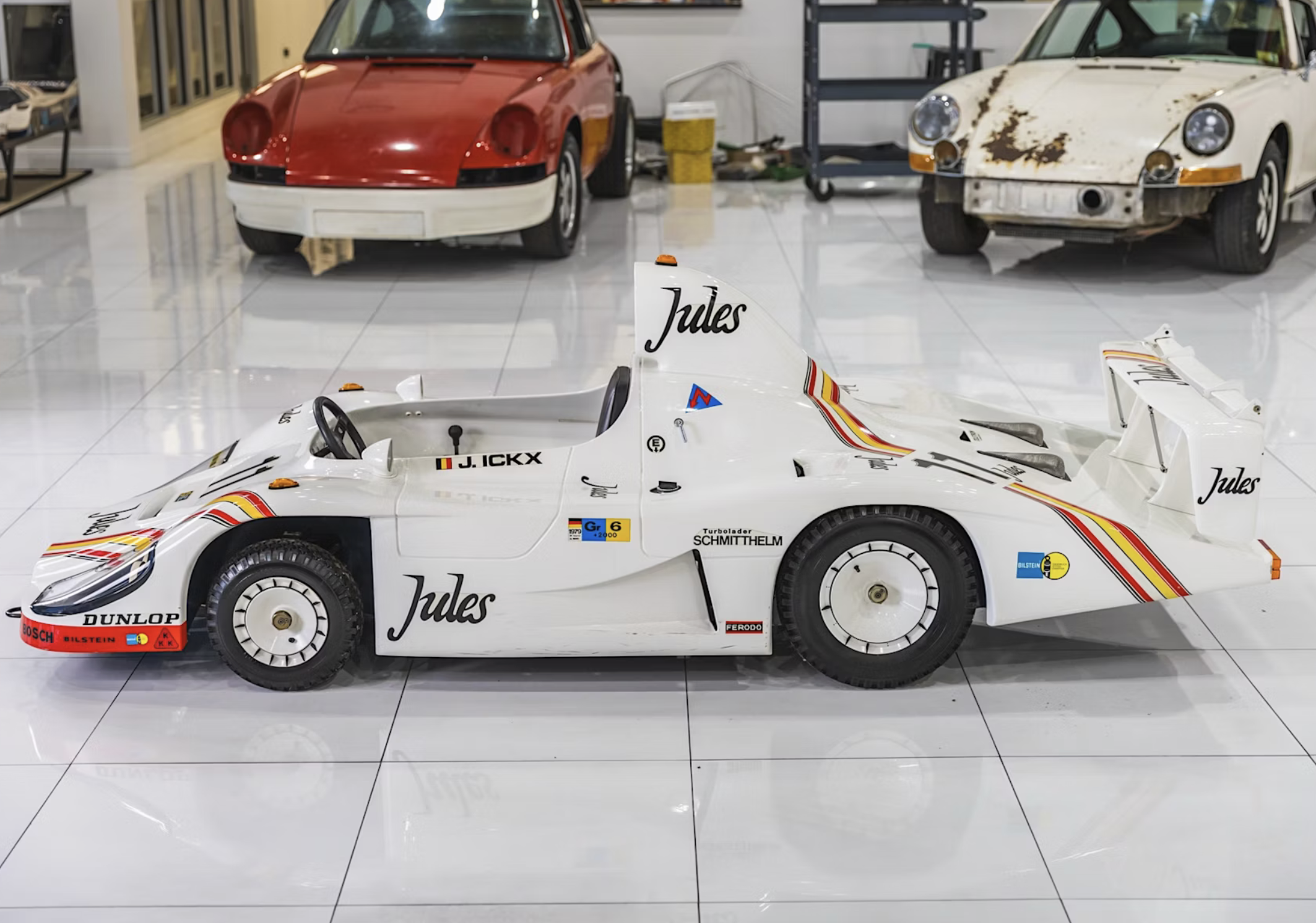 A rare 1981 Porsche 936 Junior “Jules” gas-powered go-kart is drawing attention at a no-reserve auction featuring the estate of renowned Porsche Master Mechanic David Glenn. The miniature racer, modeled after the 1981 Le Mans–winning 936/81 “Jules,” is currently bid to $1,000 with 33 days remaining in the sale, hosted through Broad Arrow Auctions in Savannah, Georgia.