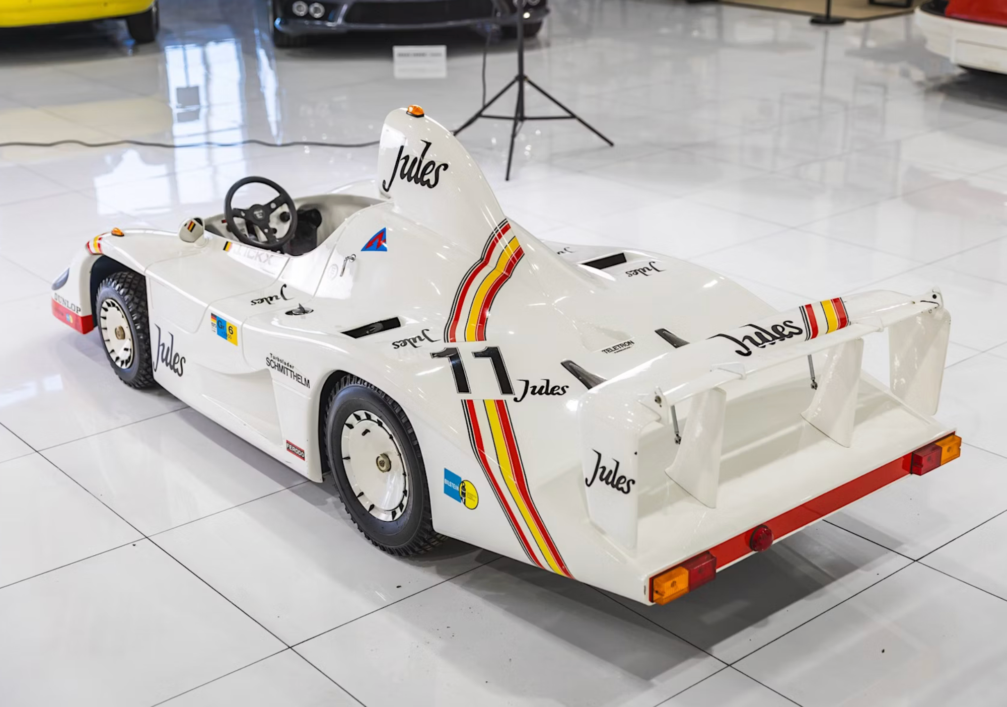 Finished in authentic “Jules” livery, the go-kart remains in visually appealing but unrestored condition, showing minor body cracks and requiring recommissioning after years of storage. Despite those needs, its combination of craftsmanship, rarity, and motorsport heritage make it a standout among the 70-plus items offered from Glenn’s estate.