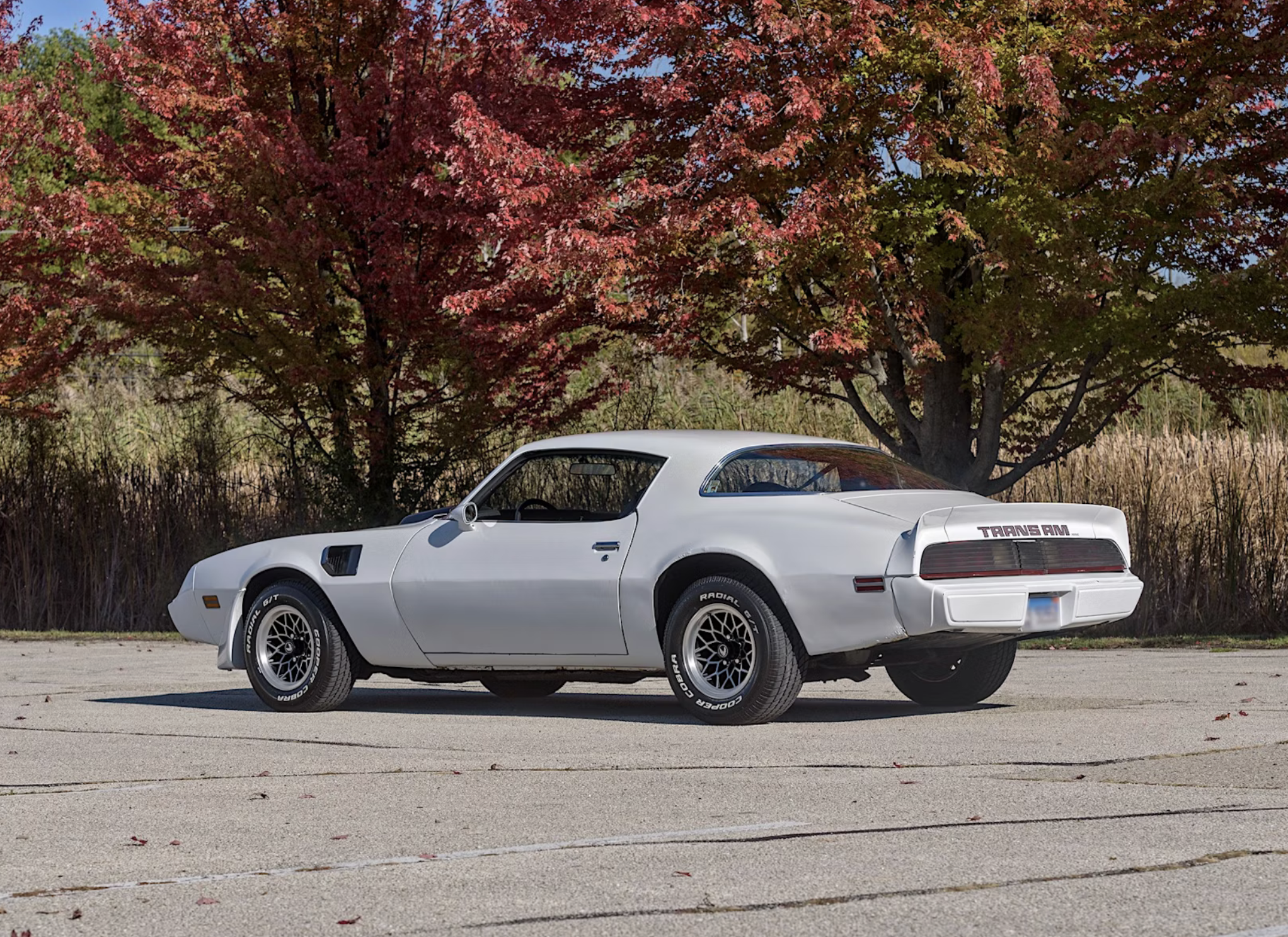 Recent maintenance has kept the car mechanically sound, including fluid replacements, gasket and bushing updates, and carburetor tuning. The Trans Am rides on 15-inch snowflake wheels wrapped in Cooper Cobra tires, with fewer than 2,000 miles on the current set.