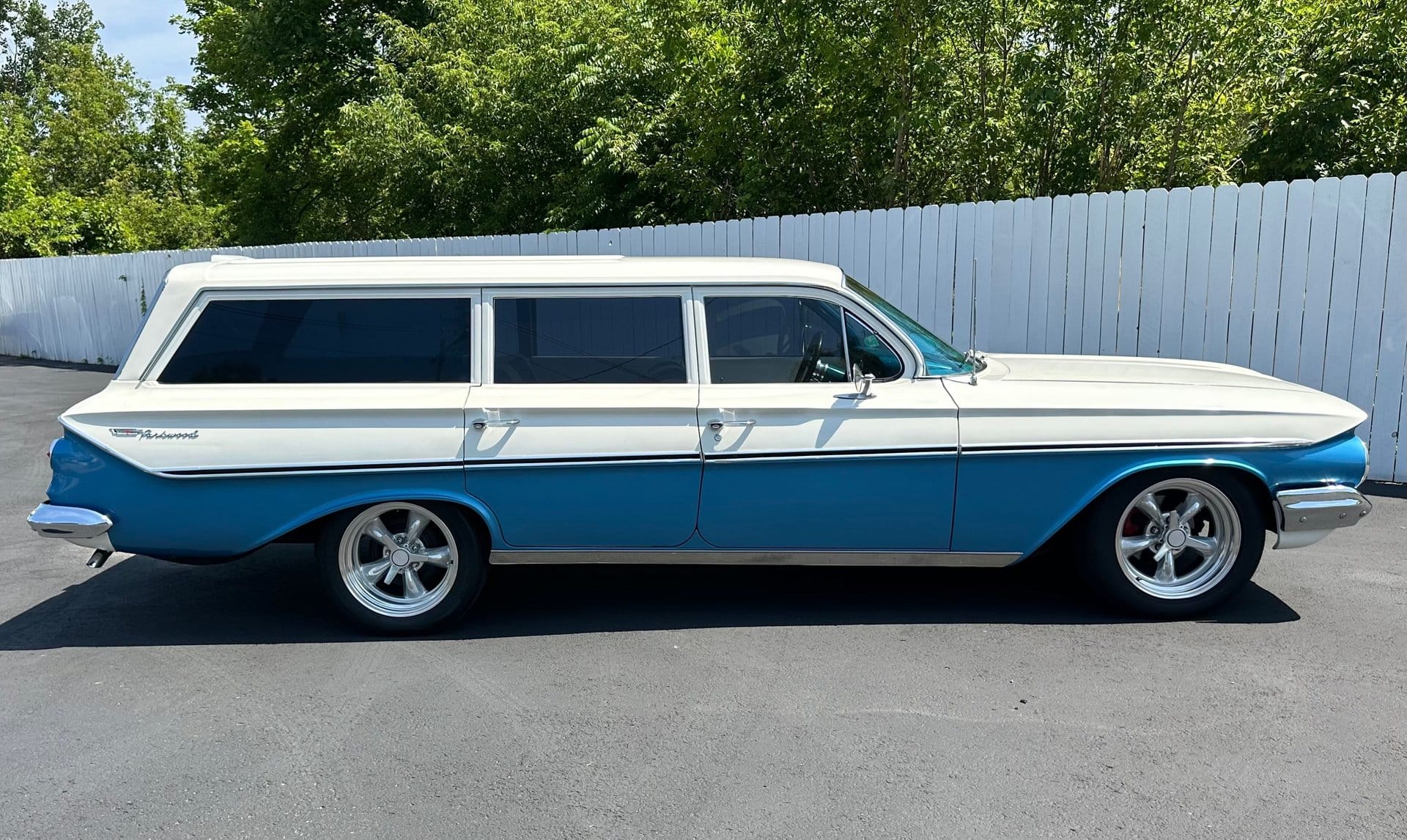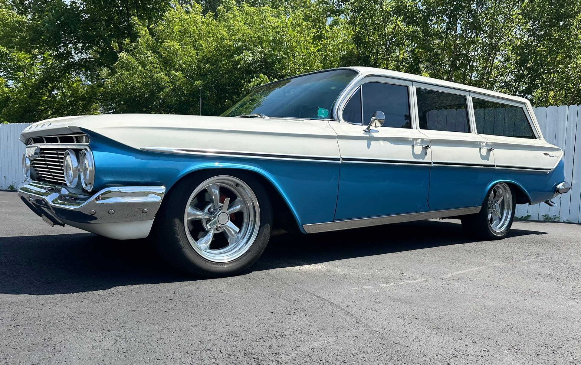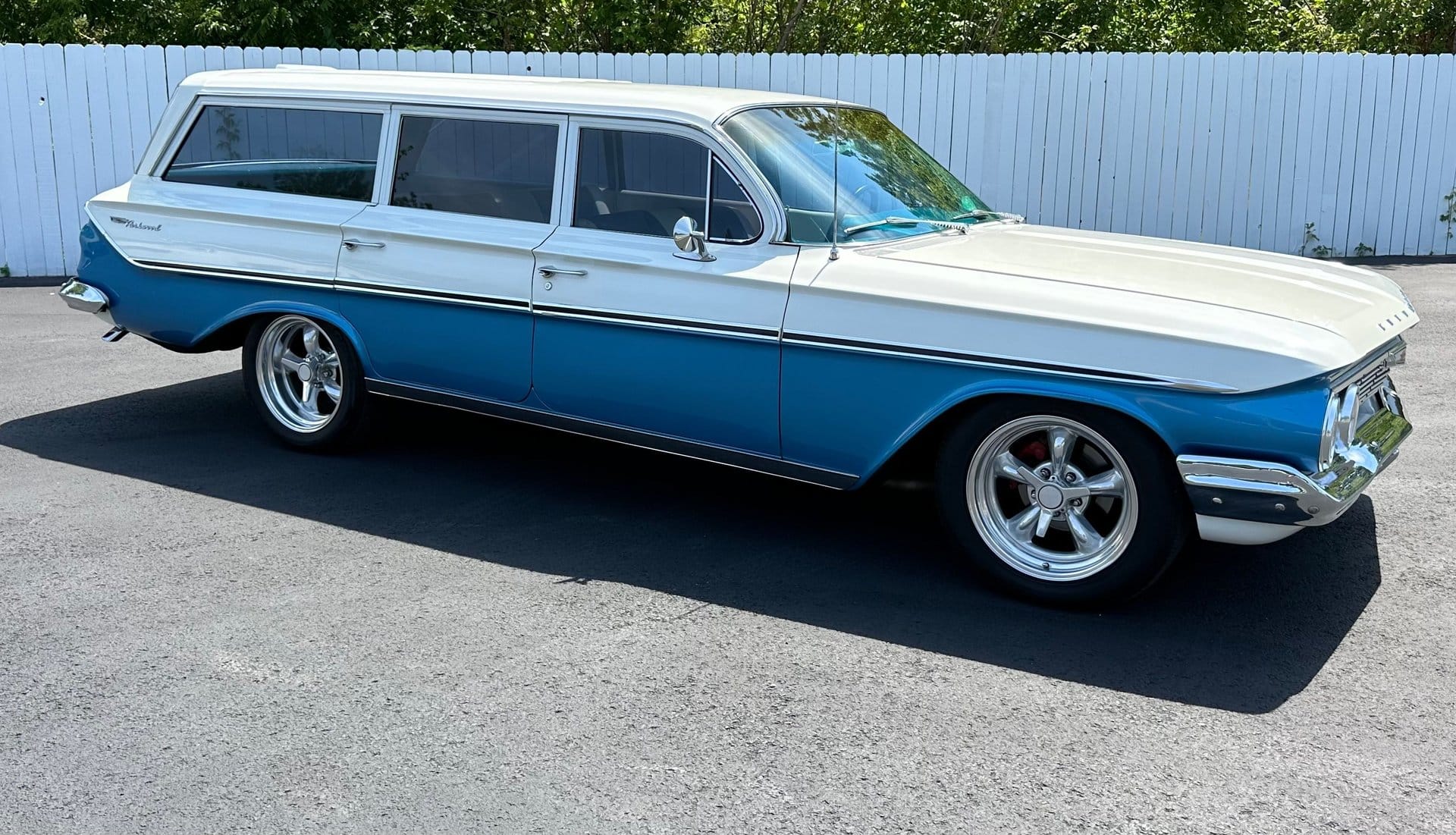 Ground-up restored 1961 Chevrolet Parkwood wagon with 348 V-8, modern upgrades, and proven reliability, built for long-distance cruising.