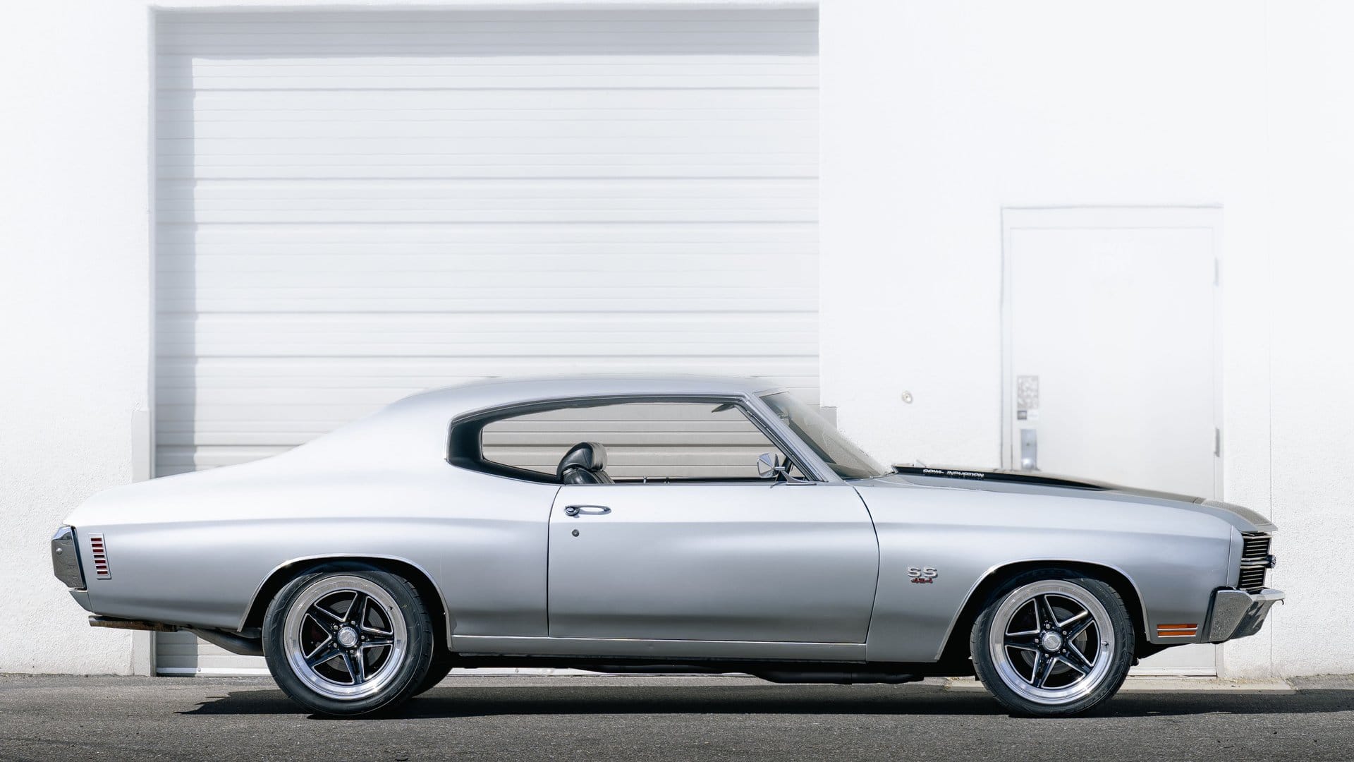 Originally delivered in Medium Turquoise Metallic, this example was repainted Cortez Silver during a later refurbishment. The updated exterior retains several signature Chevelle design cues including black striping, a black grille and taillight panel, and a cowl-induction hood. Additional details include T3 headlights, dual side mirrors, hideaway windshield wipers and chrome bumpers that maintain the car’s classic appearance.