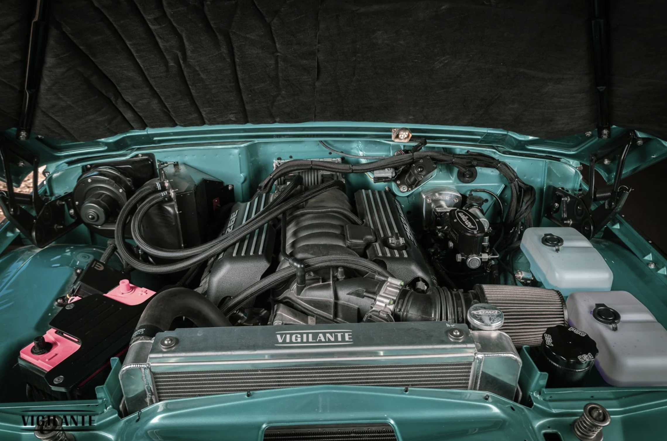 At the heart of the build is a naturally aspirated 392 SRT-8 HEMI V8 producing 485 horsepower, paired with a handcrafted gated manual transmission. VIGILANTE also offers additional HEMI engine options ranging from 485 horsepower up to 1,000 horsepower. The powertrains are the same family of engines found in modern Jeep Grand Cherokee SRT and Trackhawk models.
