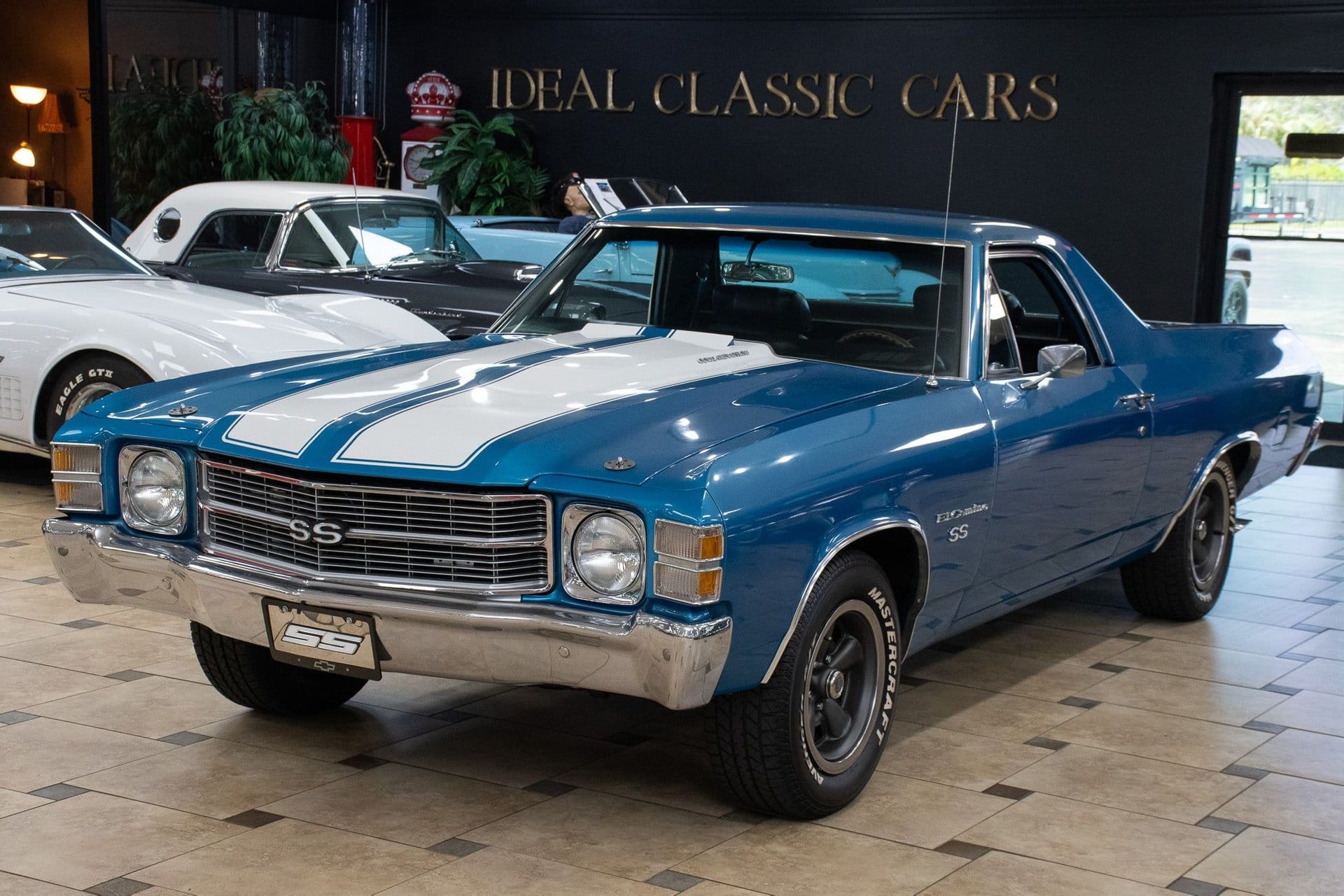 This 1971 Chevrolet El Camino Restomod is the perfect fusion of muscle car performance and classic utility. Powered by a 383ci Stroker V8 with Holley Sniper EFI, aluminum heads, and MSD ignition, it's backed by a 4L60E 4-speed automatic with CompuShift control and a Ford 9" rear. Finished in correct Mulsanne Blue with a cowl induction hood and LED headlights, it features power steering, power brakes, upgraded A/C, and an aluminum radiator with dual electric fans. Inside, Flo Fit bucket seats, Dakota Digital gauges, and a Custom AutoSound system make it as comfortable as it is powerful.