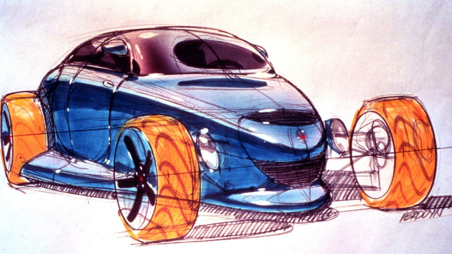 It was at Pacifica, Chrysler’s design studio in Carlsbad, California where the idea to make a factory hotrod first came about. According to Kevin Verduyn, a former Chrysler designer, an intern threw out the notion of designing a hotrod when they were brainstorming. Management saw some of the sketches by Verduyn he had on his office wall and gave the direction to make such a car for Plymouth.