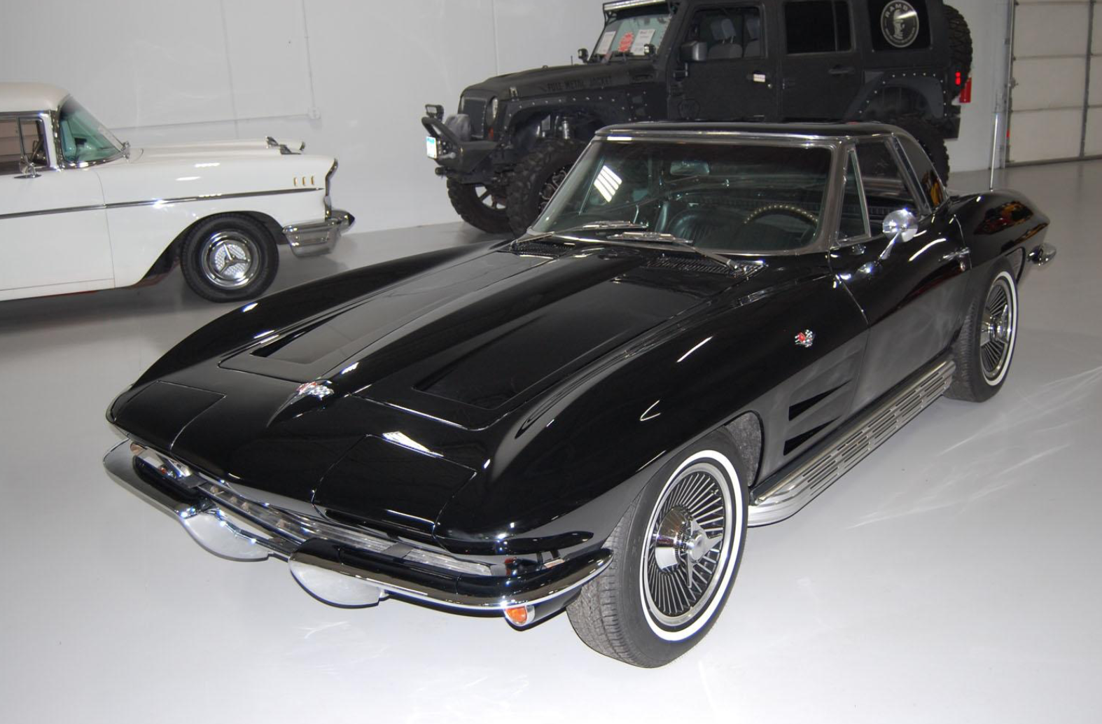 Nothing beats a triple black Corvette Convertible for sex appeal and this 1964 'Vette has got that look. Ordered with both hard and soft tops in black as well as black interior, not only did they get the looks right, but they also put the right engine under the hood. Matching numbers 327/365-hp motor hooked up to a 4-speed manual transmission.