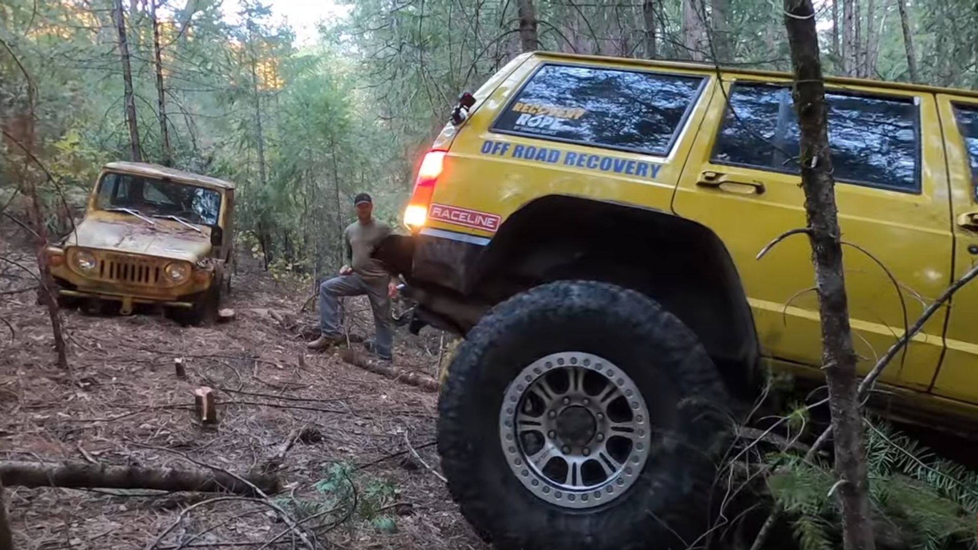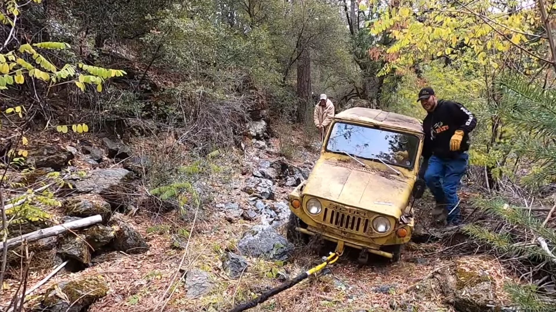Even more challenging is dragging the dead LJ20 back to the trailer they pulled with a big modern pickup. Fitting one rig through many tight squeezes can be quite the challenge, but trying to fit a second vehicle you’re towing through those same passes becomes almost impossible.