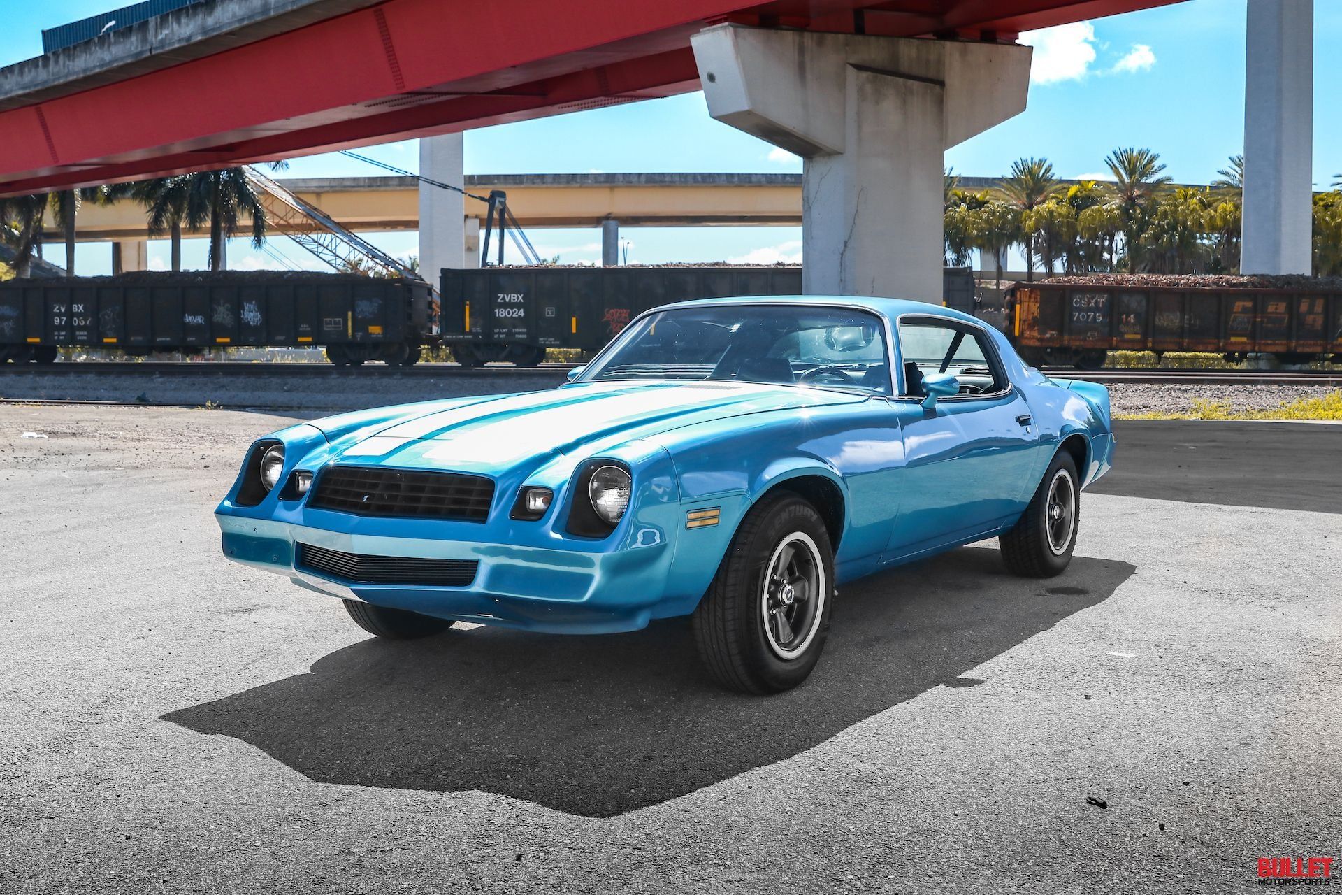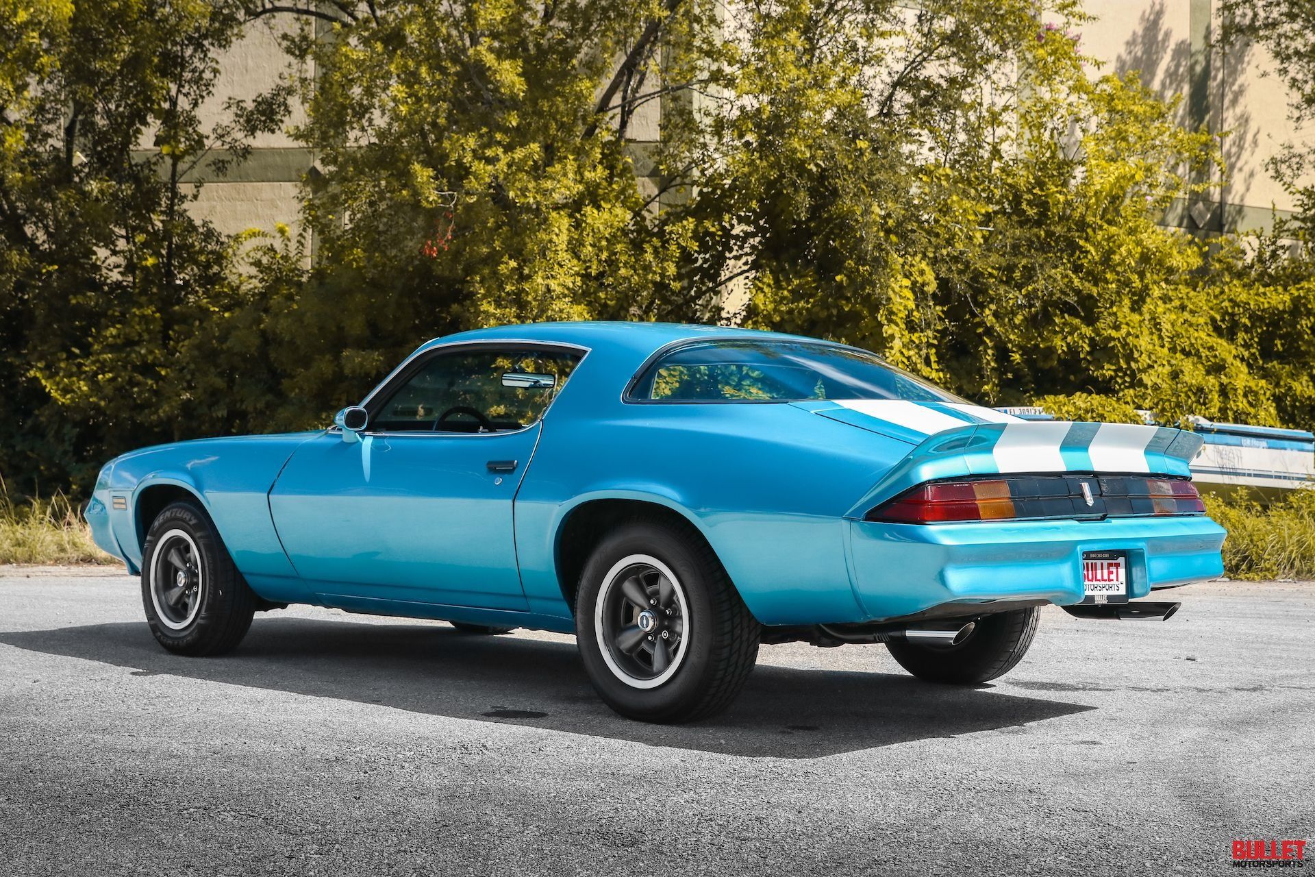 We actually came in way under budget on all three, with the most expensive Camaro being this 1978 model. It's been restored and modified just a bit, and it looks terrific in metallic blue with pearl white racing stripes.