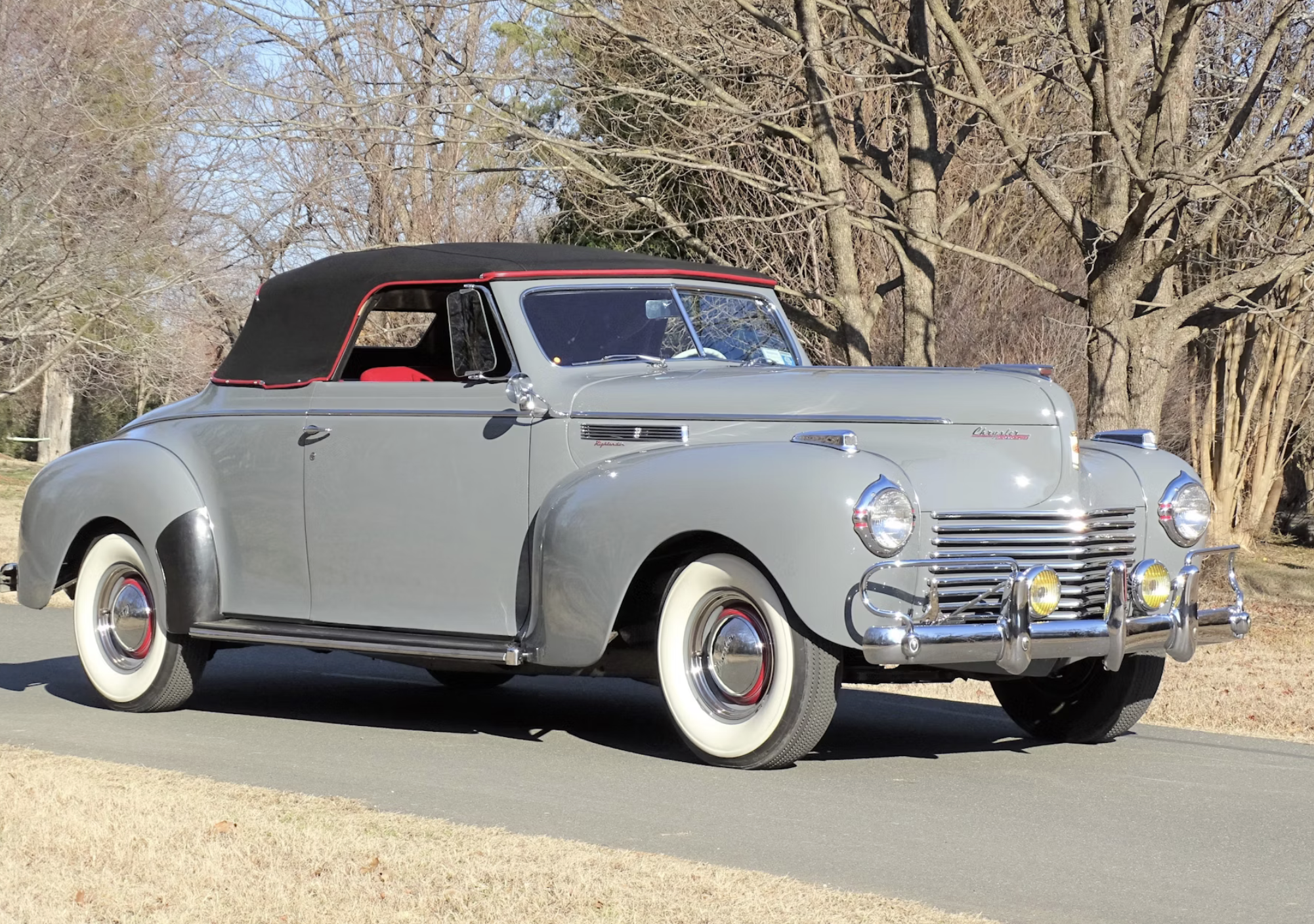 At the top of the vintage selection sits the 1940 Chrysler New Yorker Highlander Convertible Coupe, a luxurious pre-war standout blending streamlined design with period opulence. Nearby, the 24k-mile 1949 Ford Custom Convertible carries postwar optimism with remarkable originality, showing off brightwork and craftsmanship from the dawn of America’s cruising era.