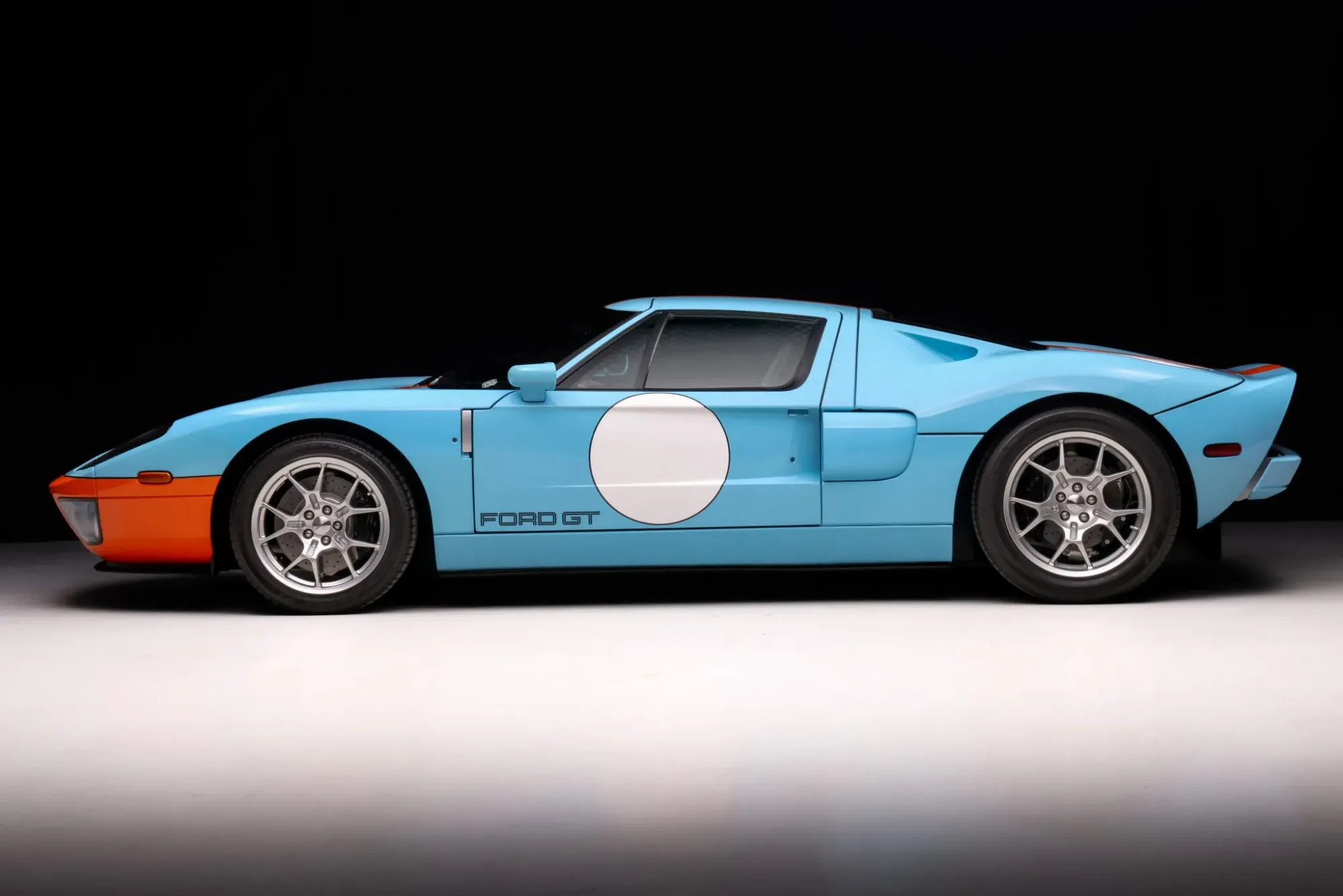 The GT's interior showcases a cockpit trimmed in Ebony leather, with Sparco-designed manually adjusted seats that incorporate carbon-fiber shells, GT40-style ventilation grommets, and harness slots. Modern amenities include air conditioning, remote keyless entry, a CD stereo, and push-button ignition, ensuring a comfortable ride without sacrificing the car's race-inspired feel.
