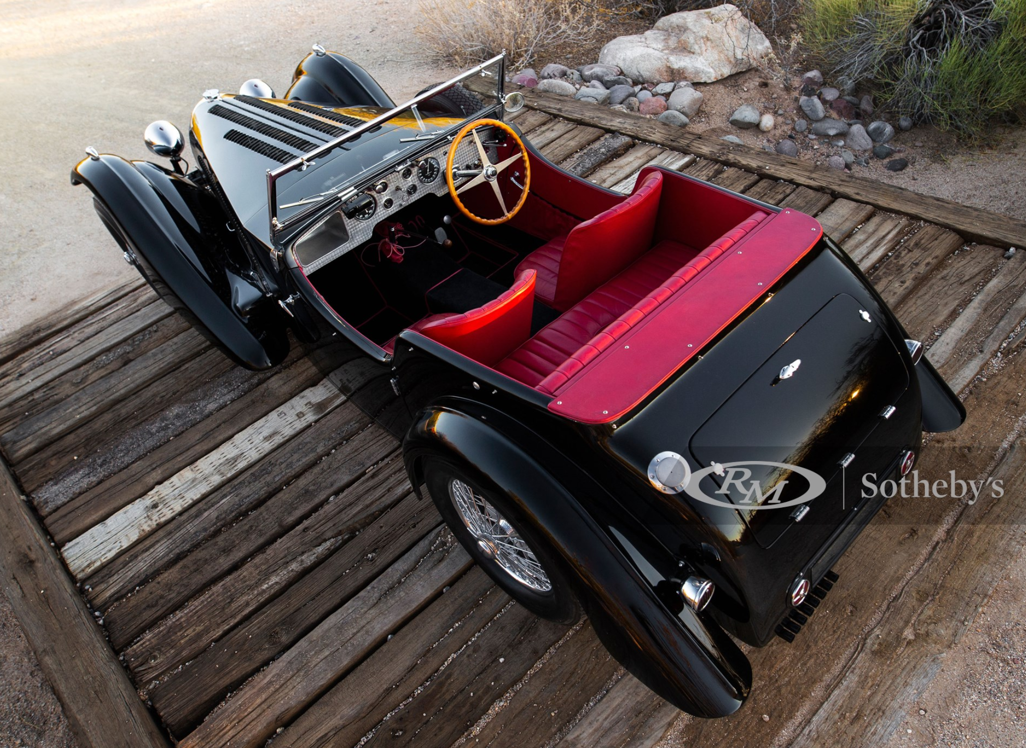 RM Sotheby’s is offering a nearly perfect example of a Model 57SC with a truly fascinating history. The car was originally made for a close friend of Jean Bugatti who was forced to sell the car after becoming the president of Rolls-Royce. It was then shipped to New York where it was stripped of its Corsica coachwork in favor of a more favorable design for racing.