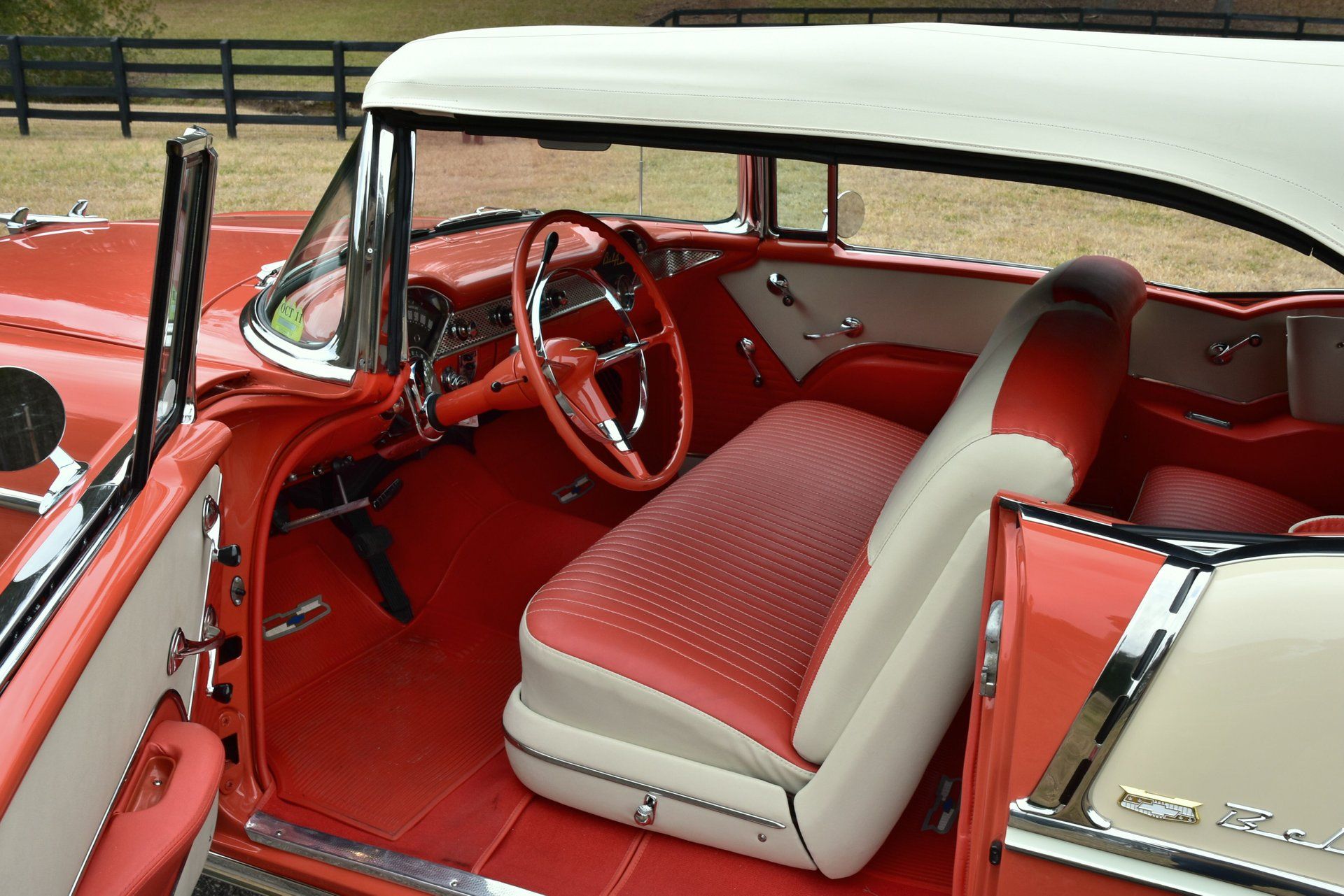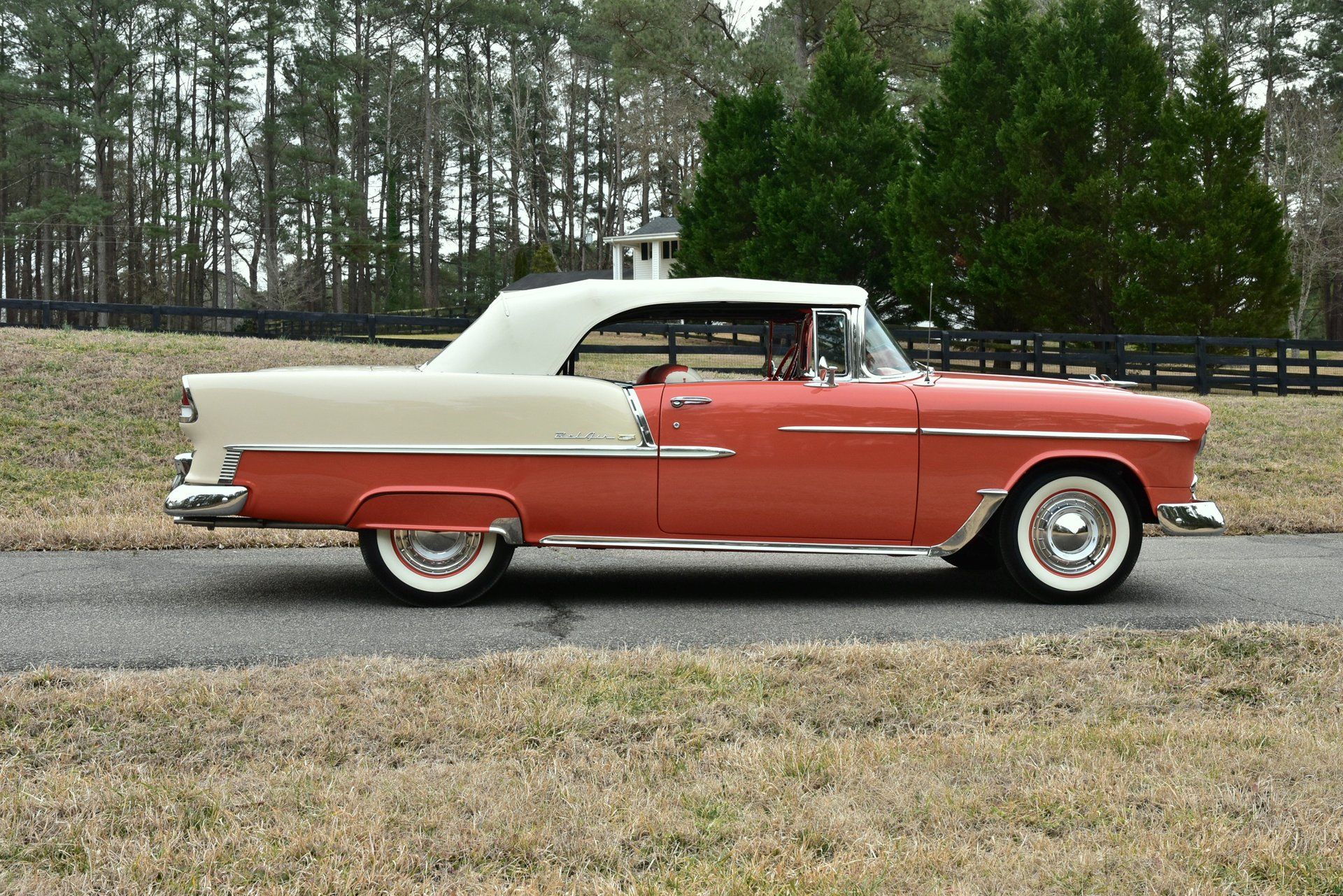 Raleigh Classic Car Auctions is offering this stunning 1955 Chevrolet Bel Air Convertible. A beautiful red and white paint scheme is fully representative of the time and continues to the interiors two-tone upholstery. This 1955 Chevrolet Bel Air Convertible has had a professional restoration and has just 74,549 miles on the clock. Options such as power steering, dual exterior chrome rear mirrors and fender skirts make this show quality Bel Air an excellent example of the best of 1955.