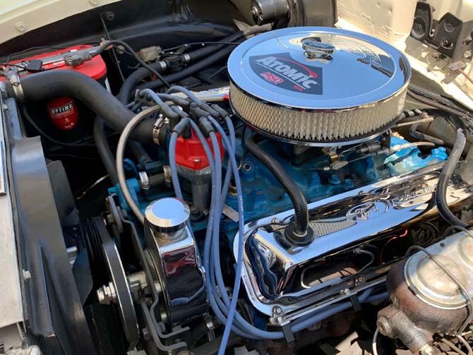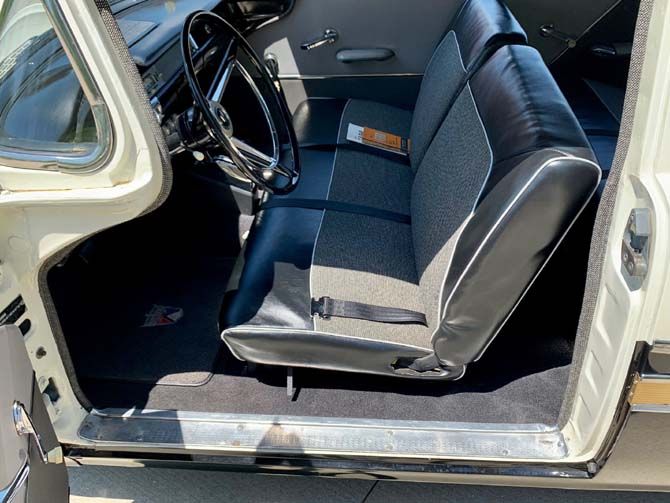 While the stock powertrain is long gone, this car still like it did when it rolled off the assembly line back in 1958. That's thanks to the Raven Black over Colonial White paint scheme that matches the original paint codes on the trim tag, although the 15-inch American Racing wheels – about the only visual cue that this car isn't bone stock. Likewise, the interior has been kept close to stock with the two-tone cloth seating, and even the aftermarket stereo has been mounted in the glove box to keep the cabin looking factory fresh. The only noticeable mods made inside the cabin are auxiliary gauges under the dash and the ratchet shifter.