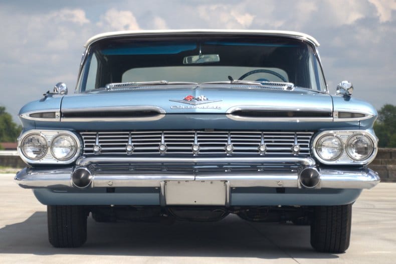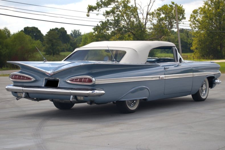 A beautifully finished 1959 Chevrolet Impala convertible, presented in Frost Blue with a matching blue interior, will be featured at an upcoming November auction. This two-door classic represents one of Chevrolet’s most distinctive designs, combining late-1950s style with a well-documented 348 cubic-inch V8 powertrain.