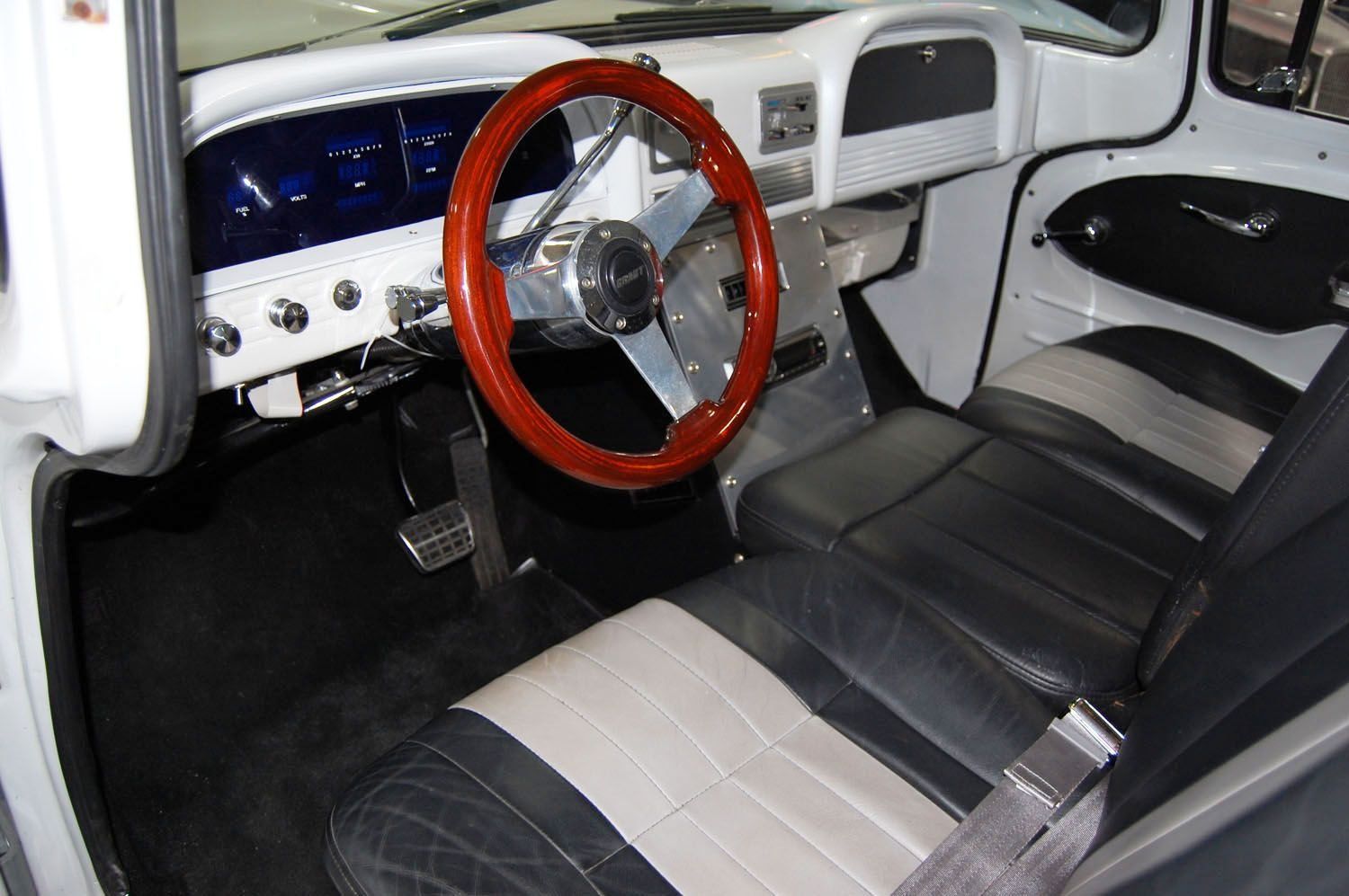 This southern truck underwent a frame-off restoration, and that is shown in the overall quality everywhere you look. The bright white paint job is accented by black body stripes, and chrome bed rails, bumpers and wheels provide a perfect finishing touch. The custom interior features leather bucket seats, digital gauges and a thick wood-rimmed steering wheel, but the best part of this truck is, by far, the impressive cargo bed with the wood planks and bright metal strips.