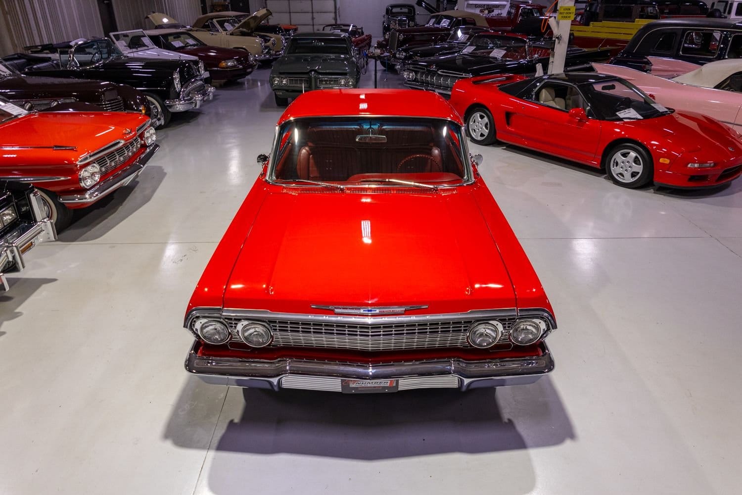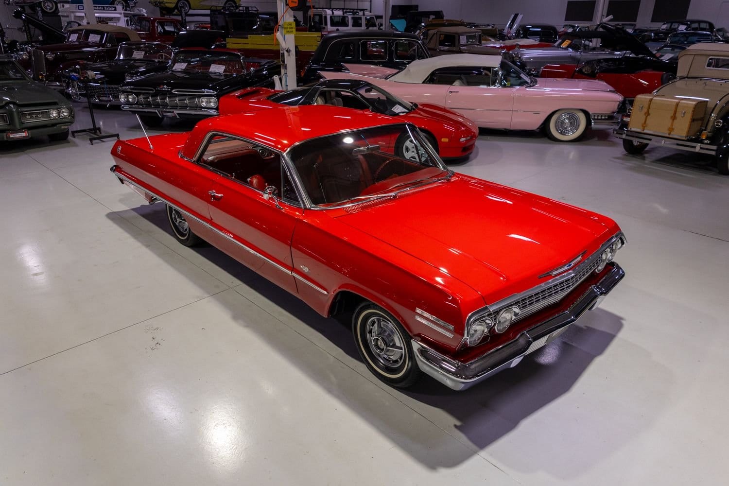 The two-door hardtop, finished in Ember Red, reflects one of the most recognizable designs of its era. The 1963 model year is widely regarded as a high point for the Impala, featuring clean lines, a sharply defined roofline, and Chevrolet’s signature triple taillight design. The Super Sport package, introduced just two years earlier, elevated the Impala from a popular full-size model into a more performance-oriented offering with distinctive interior and exterior upgrades.