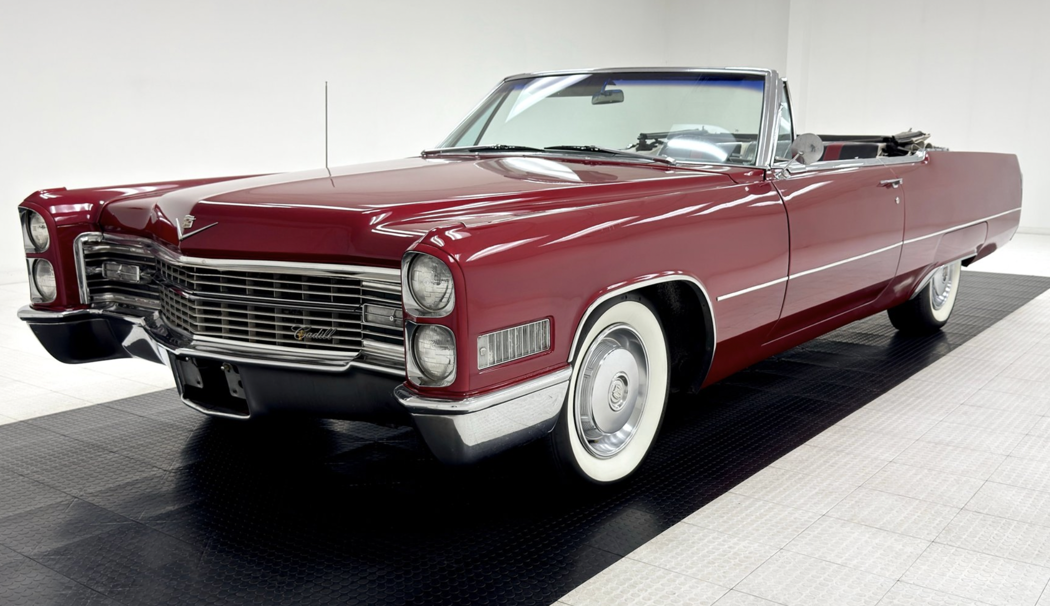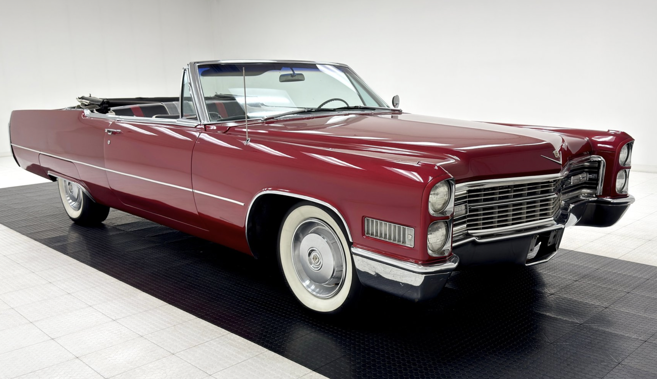 A Flamenco Red 1966 DeVille drop-top cruiser with 429 V8, TH400 auto, and classic Cadillac luxury—ready for warm-weather driving.