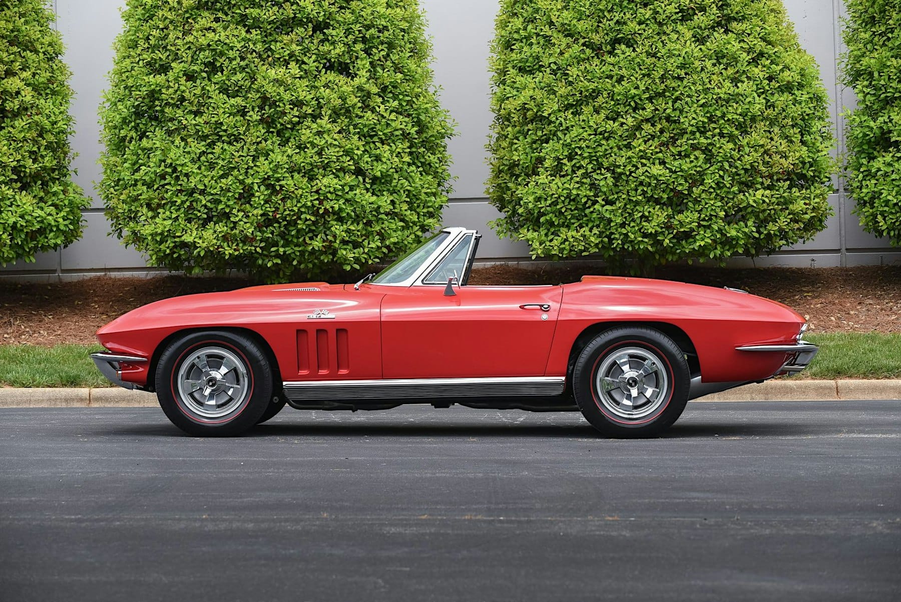 Originally delivered in Sunfire Yellow, this second-generation Corvette (chassis 194676S112829) was produced in June 1966 at GM’s St. Louis plant and has since been restored with a focus on both performance and aesthetics. Its L36 427-cubic inch V8, period-correct and dyno-tested at 373.6 horsepower and 447.8 lb-ft of torque, sits proudly under the long, contoured hood, paired with a Muncie four-speed manual transmission — the only gearbox offered for this potent engine in ’66.