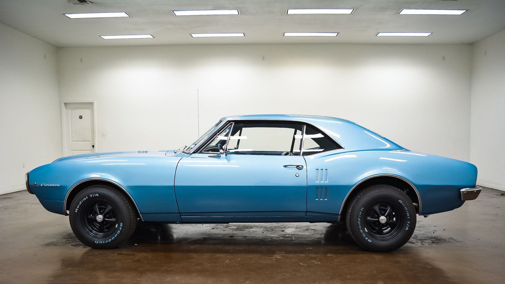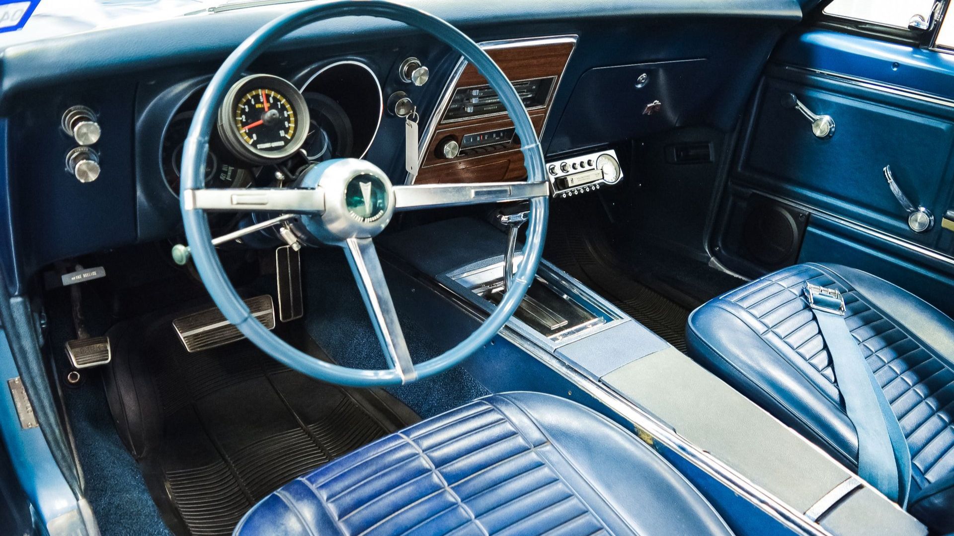 A lot of people prefer the looks of the ’67 Firebird versus the Camaro. After all, Pontiac designers did an excellent job of using some of the same aesthetics as those found on the GTO and it turned out fantastic. The Tyrol Blue paint does a great job of flaunting all the nips and tucks in the body panels. All the factory badging and trim pieces are still present. The Pontiac Rally wheels are a flat black, so they don’t really jump out.