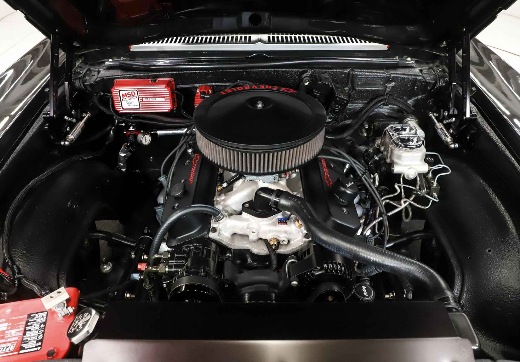 Under the hood lies a 406-cubic-inch small-block V8 built by Comptech Racing Engines. Dyno-tested at 411 horsepower and 456 lb-ft of torque, the engine features a Lunati Voodoo camshaft, Edelbrock intake, Holley 650 Street HP carburetor, and MSD ignition. It's paired with a Tremec 5-speed manual and a Dutchman 9-inch rear axle with posi-traction gears. Power delivery and control are further enhanced by a hydroboost braking system and a blacked-out front accessory drive system.
