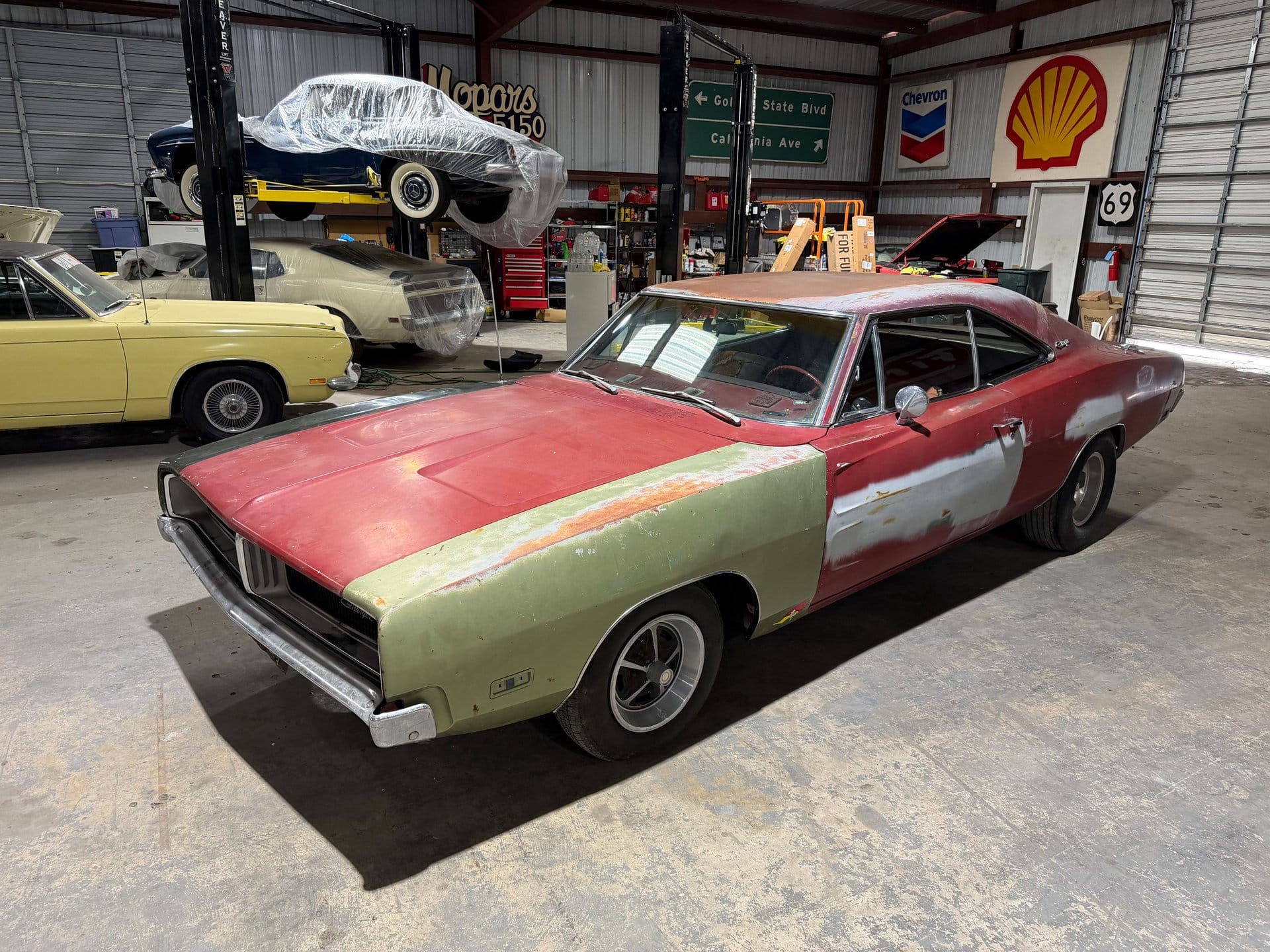Although the car is described as a project, it is characterized as extremely solid and very complete, with most of the hard-to-find and model-specific parts present. The Charger was originally built with 15-inch body-color steel wheels and remains a strong candidate for restoration, with the potential for a high-value finished product once completed.