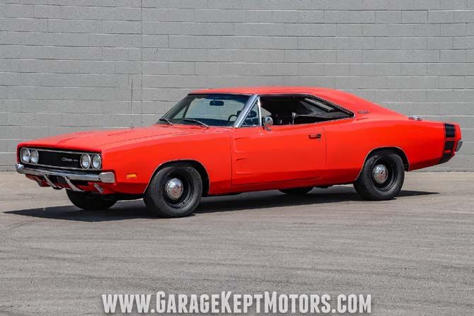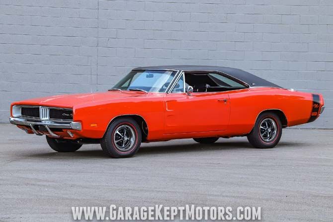 The second-generation Dodge Charger is an icon among muscle cars and Mopars, and the 1969 model year is arguably this car's best with its hidden headlights and horizontal taillights. This particular example is an SE model that added power windows and a black vinyl top, and the overall look is finished off with five-spoke wheels and redline tires.