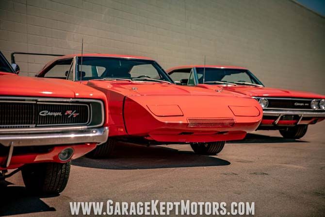 A single 1969 Dodge Charger is collectible on its own merit, but a trio of rare, restored and matching Chargers is an amazing collection in itself. What you're looking at here is all three faces of the 1969 Dodge Charger – Charger R/T SE, Charger 500 and Charger Daytona – that are powered by the same 375-horsepower, 440 cubic-inch V8, painted in matching R4 Charger Red and professionally restored with original metal.