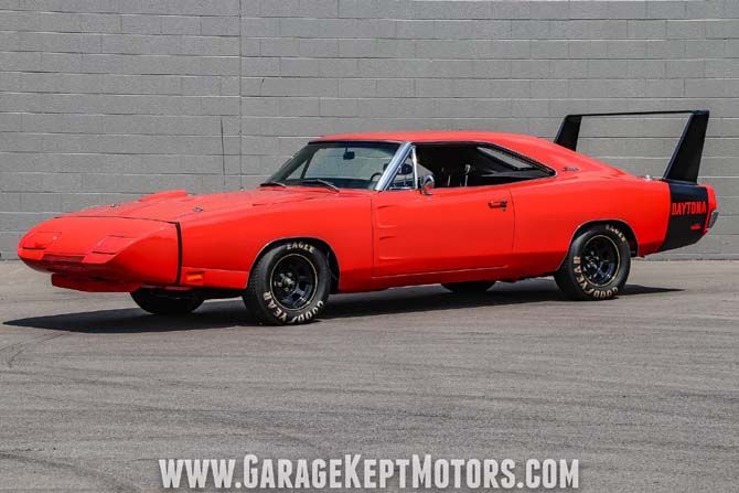 Upping the aero ante even more, the 1969 Dodge Charger Daytona was an instant success in NASCAR, and it is easily one of the most recognizable cars ever made. The bullet-shaped nose and cartoonishly large rear wing helped Dodge dominate the racing circuit, but only 503 were ever made for the car's single model year. This Charger Daytona looks like it's still ready for the track with its steel wheels and Goodyear Eagle tires.