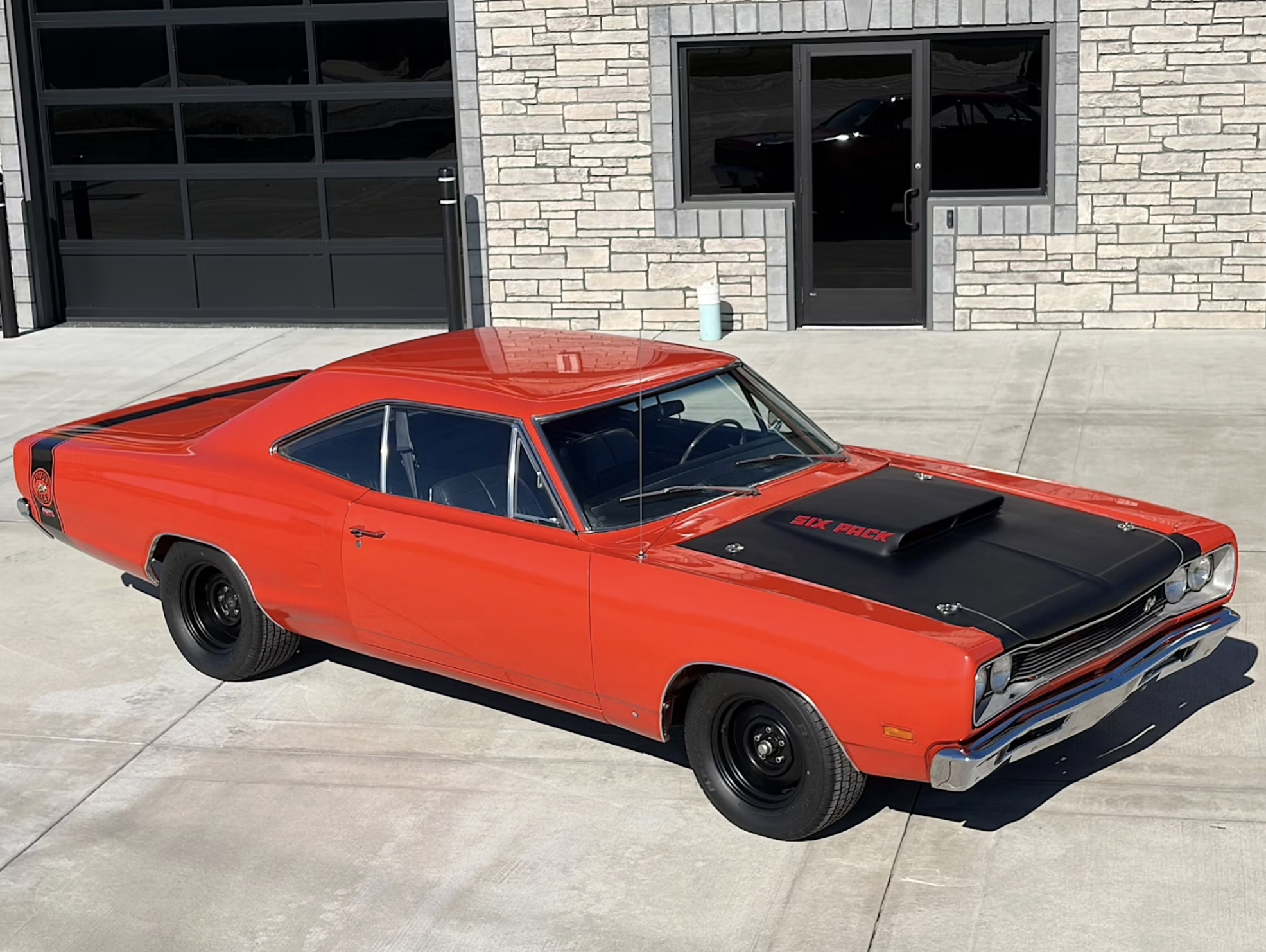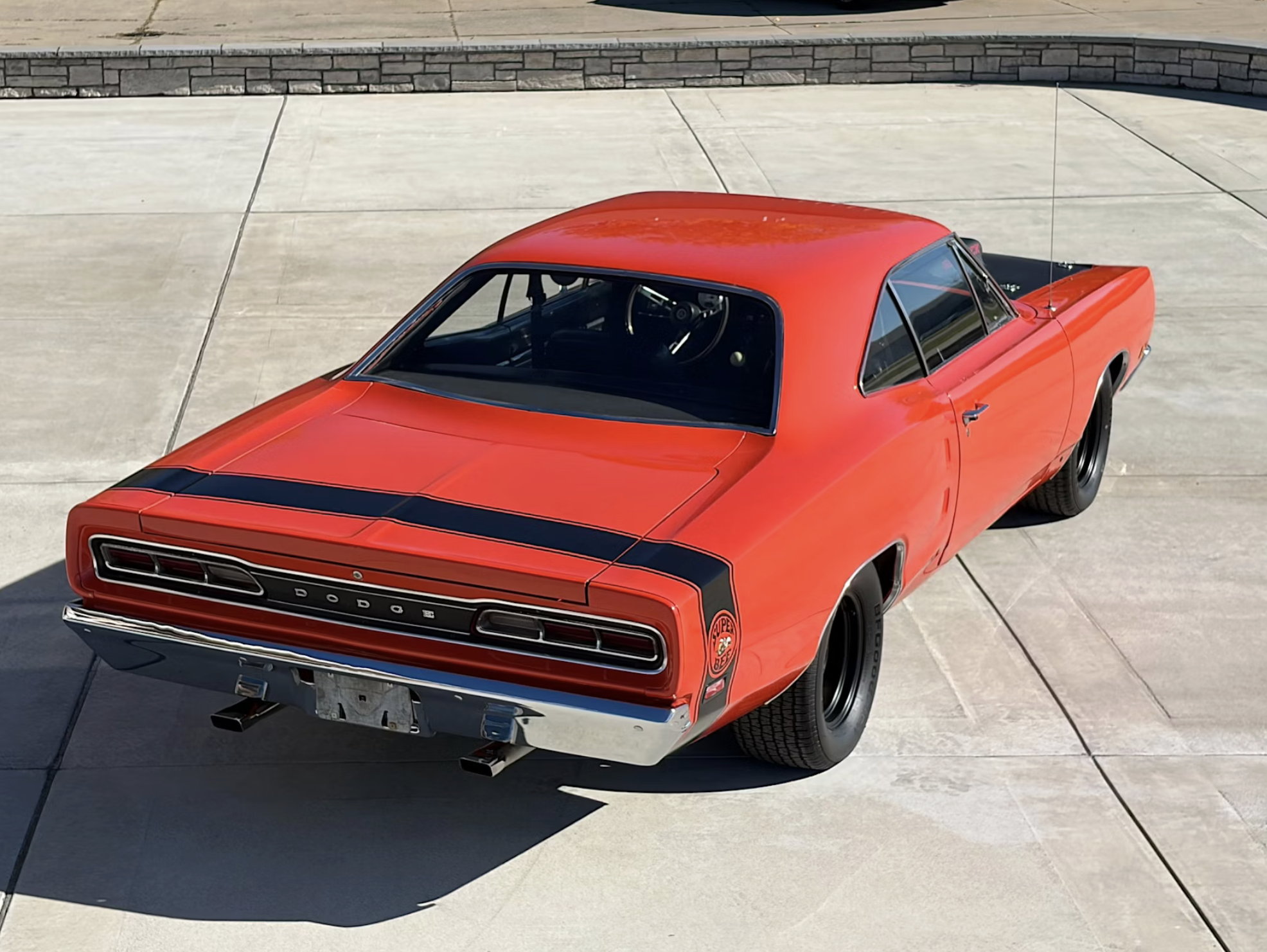 Introduced halfway through 1969, the A12 package elevated the Super Bee from a stylish mid-level performer into a serious drag-strip weapon. Beneath its matte black lift-off fiberglass hood sits the legendary 440-cubic-inch “Six-Pack” V8, equipped with three Holley two-barrel carburetors. The engine was conservatively rated at 390 horsepower and 490 pound-feet of torque—figures that made it one of the quickest street cars of its time.