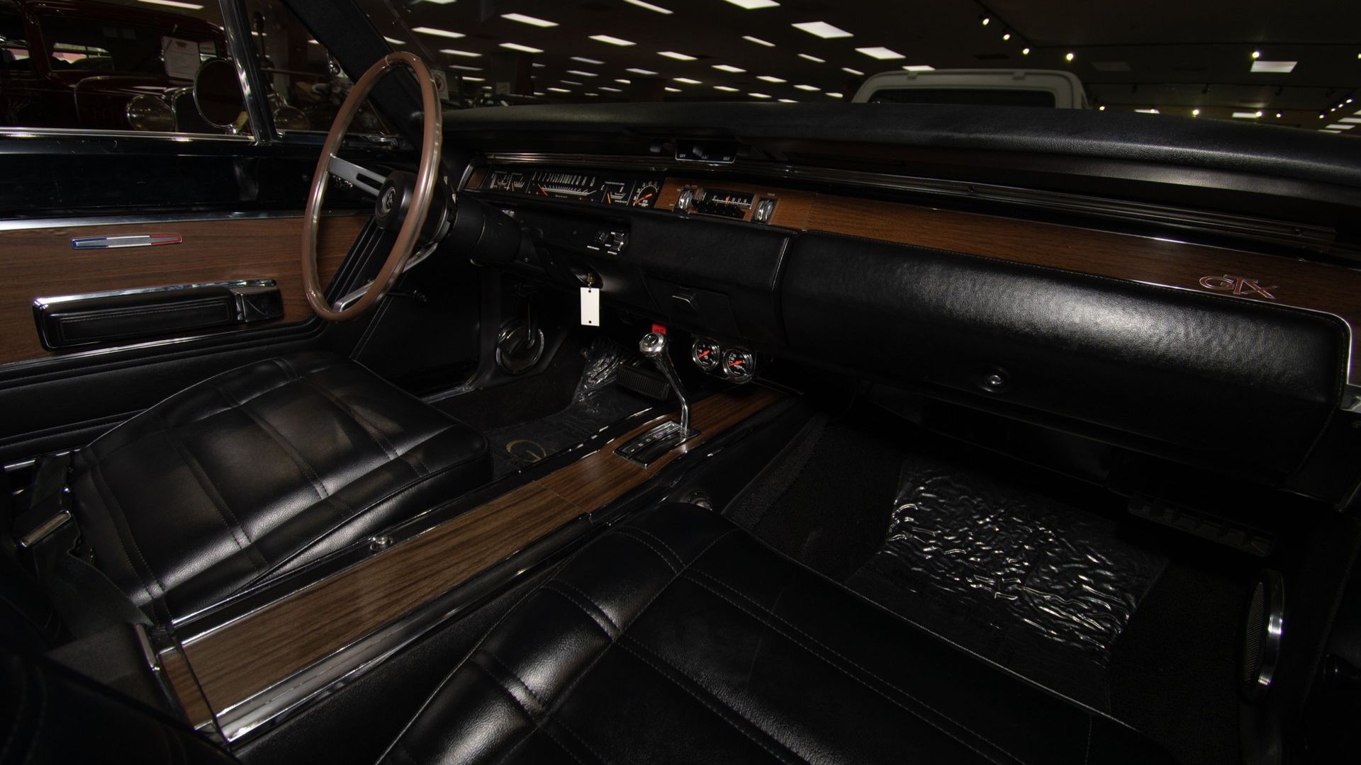 Speaking of comfort, the black interior has bucket seats and a console. You’ll also note all the switchgear, gauges, etc. are factory-correct. While all that is impressive to look at, it’s the correct Sunfire Yellow exterior, black vinyl roof, black stripes, and those Magnum 500 wheels with redline tires which will really make everyone stare.