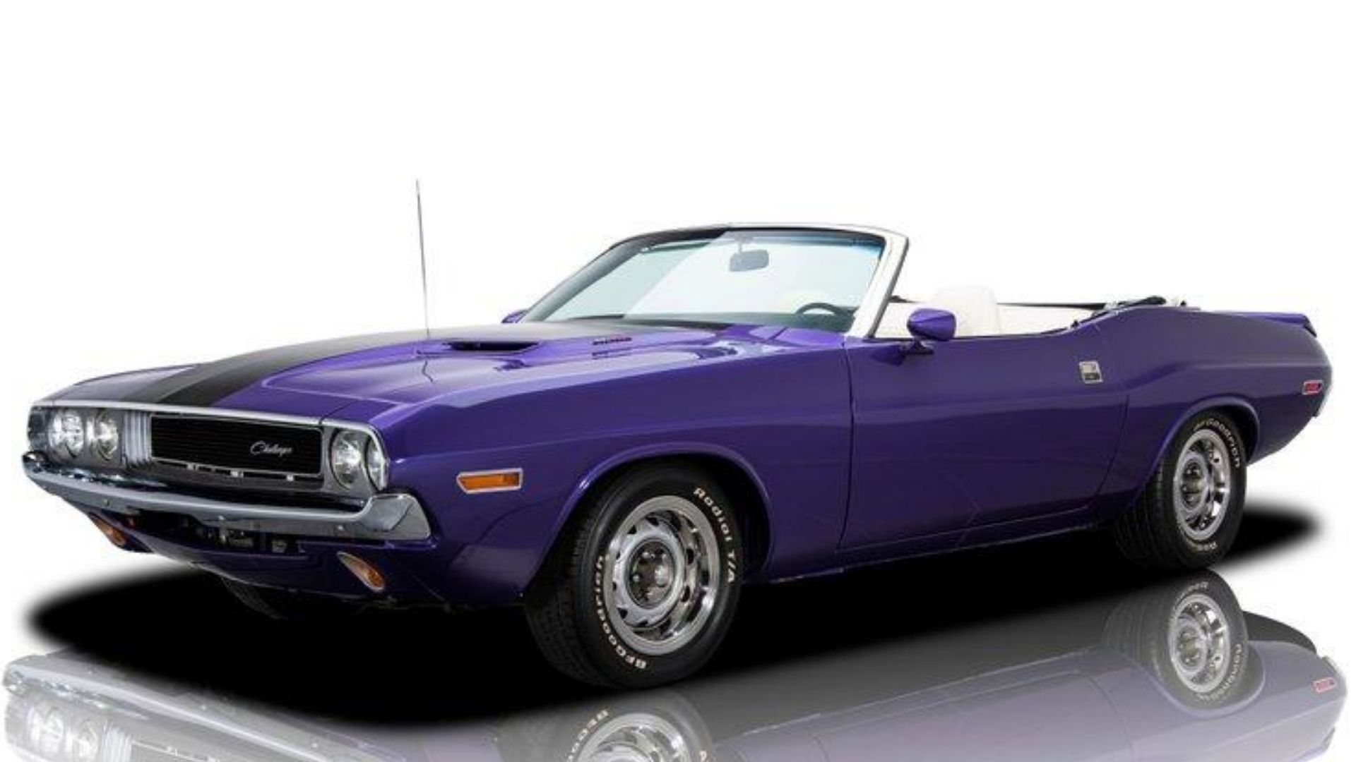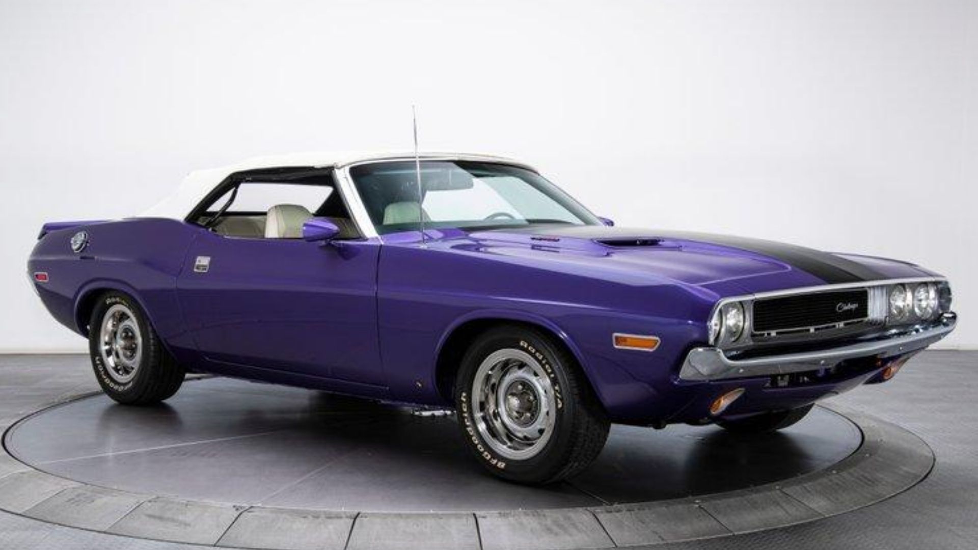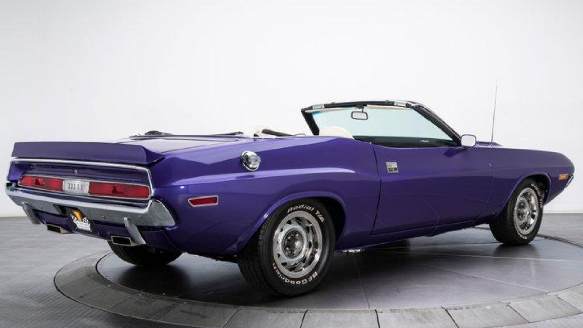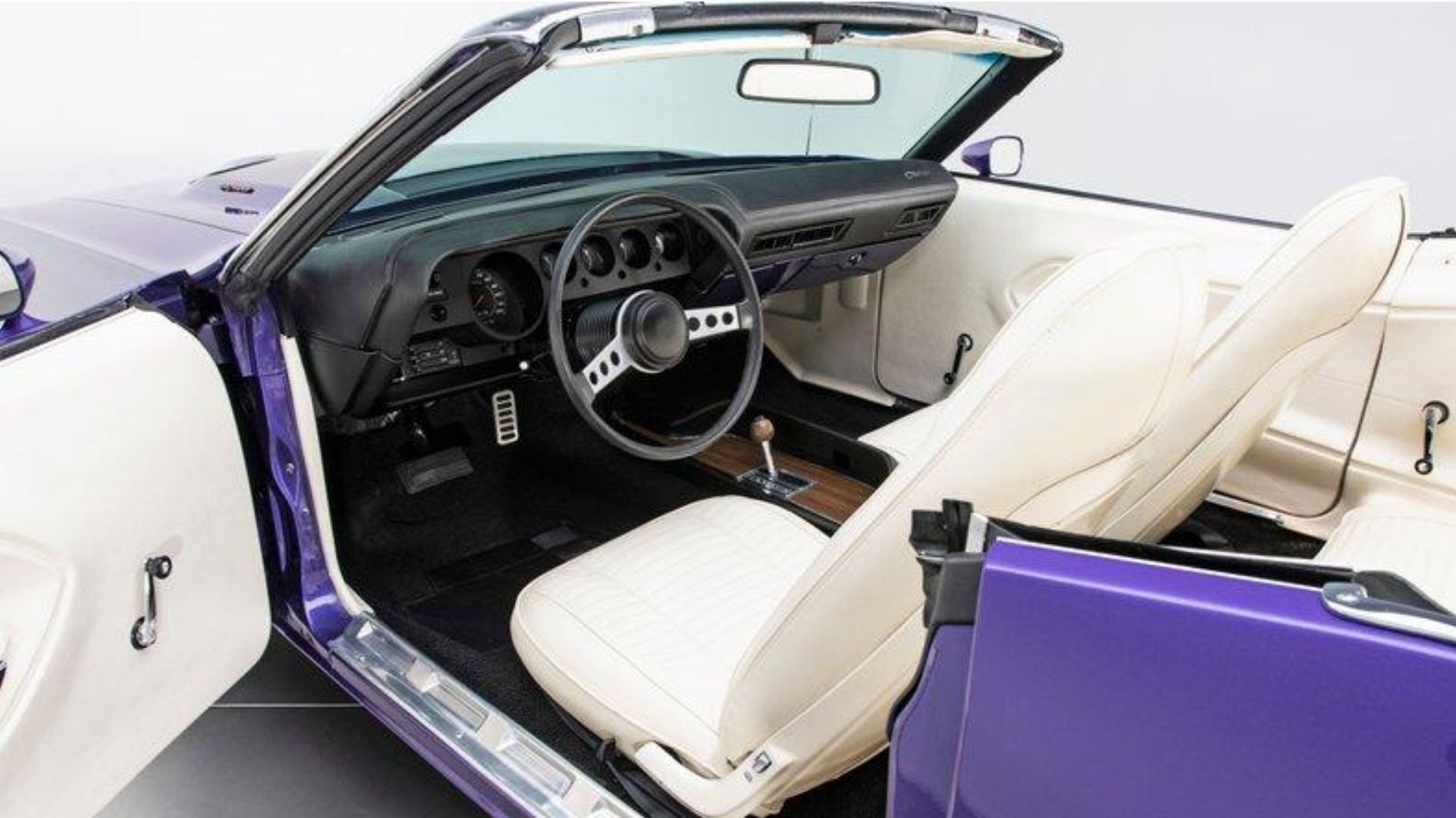 A rotisserie restoration has ensured this Challenger looks spectacular from every angle, including the undercarriage. The exterior is true to the factory looks, not only with the genuine Plum Crazy paint but also the Performance Hood Treatment and a fresh white top to match the white upholstery. The suspension has been lowered, giving this Dodge a little more aggressive stance and helping some with handling. Topping off the looks are the factory badges and 15-inch Rallye Wheels.