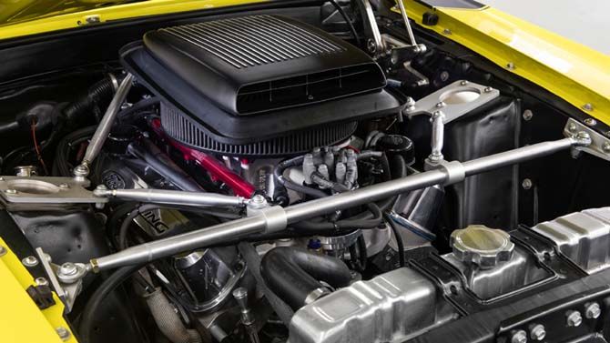 While the factory 302 cubic-inch V8 departed this 1970 Ford Mustang Boss 302 long ago, the restomod build made sure the lack of the original engine was worth it. Under the hood is a fuel-injected 408 cubic-inch stroker V8 (based on a 351 Windsor block) that features a serious cam, aluminum heads and forged pistons. The Tremec five-speed manual sends this power to the rear wheels through a Ford nine-inch rear end with a Detroit locker differential, and four-wheel Wilwood disc brakes and coilovers ensure this Boss 302 handles better than the original.