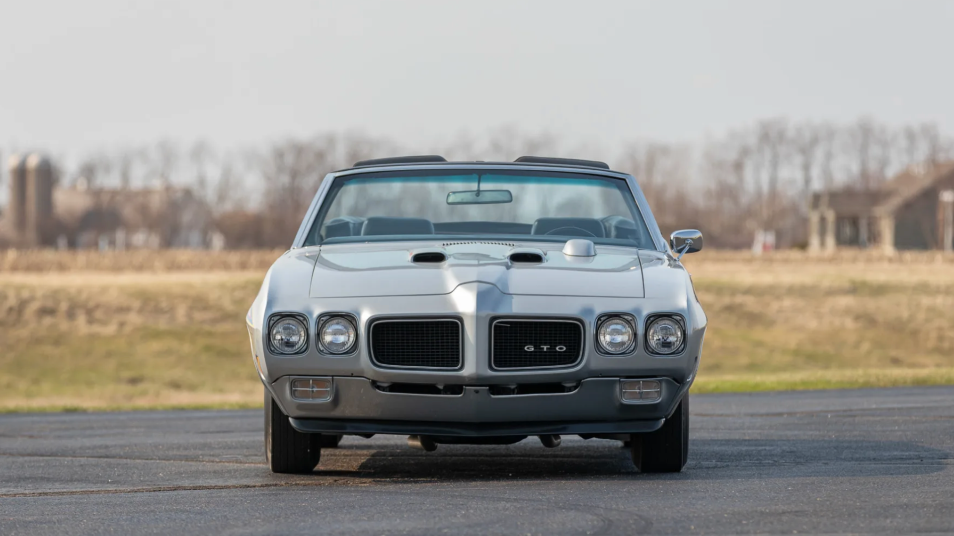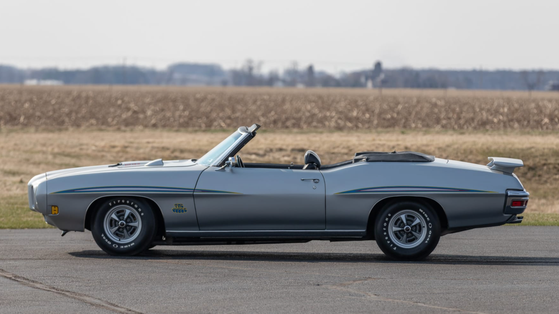 One of just 7 ever made in the convertible form, this is a special car, like your other option in a different color. It is painted Palladium Silver with a black convertible top. It has blue bucket seats and center control on the inside. It is powered by a matching numbers 400/370 HP Ram Air IV V-8 engine, which is backed by a matching numbers Turbo 400 automatic transmission that feeds into a Safe T-Track rear differential. It comes with PHS documents.
