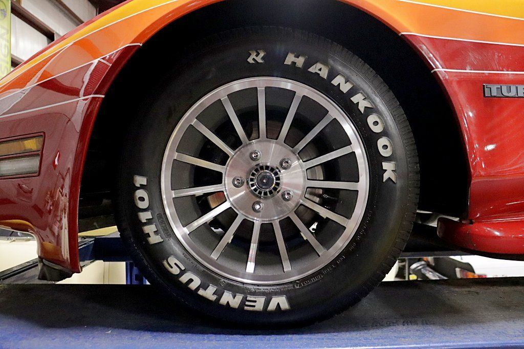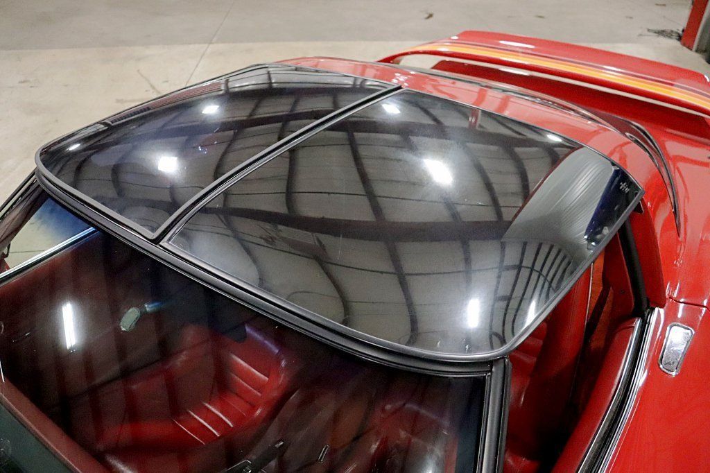 Finished in a shiny, bright shade of red, this Corvette is adorned with multi-colored stripes that is sure to bring waves of '70s nostalgia to many. The most obvious exterior difference from your run-of-the-mill '78 Corvette is the addition of the Eckler "Turbo" body kit that consists of wider fenders, a hood with custom vents, different bumpers, and rear wing. These high-quality Eckler body kits definitely make a statement. Also, the car features reflective glass t-tops that can be removed for cruising on warm, sunny days.