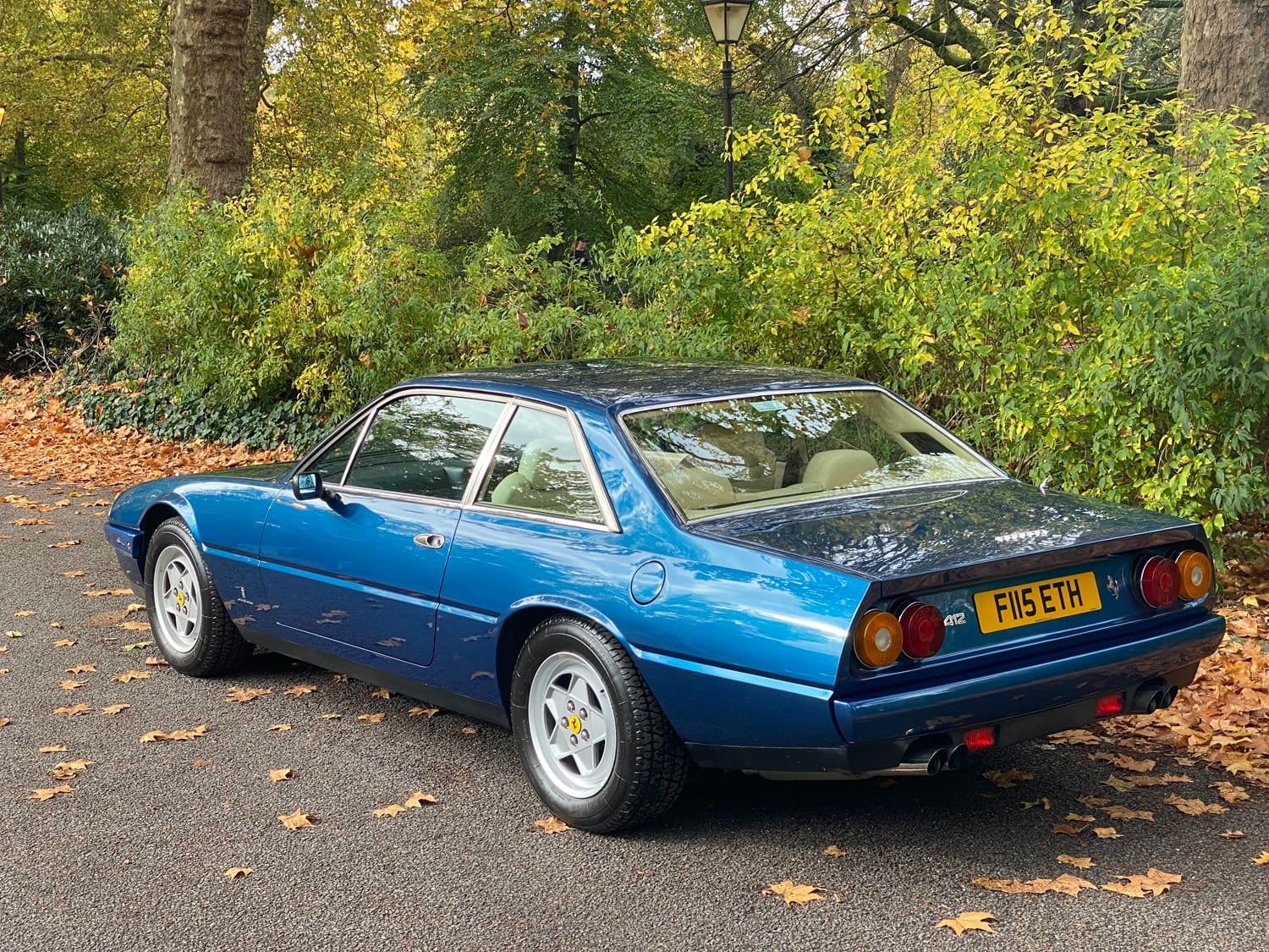 Finished in Blue Chiaro over a Crema interior, this particular 412 holds added distinction as a display vehicle from the London Motor Show at Earls Court. Its combination of understated design and refined proportions reflects a period when Ferrari prioritized grand touring comfort alongside performance.