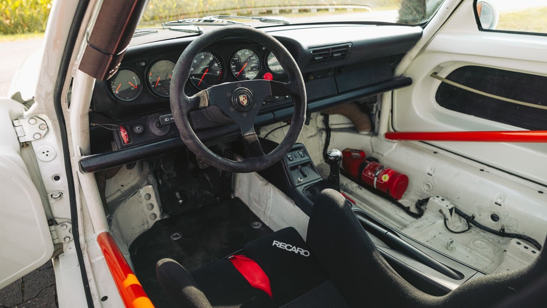 The car was originally completed in February 1991 in the period-correct Maritime Blue color and equipped from new with a leather steering wheel and limited-slip differential. It is believed to have competed in the French Porsche Cup series between 1991 and 1993, during which time its exterior was reportedly repainted Grand Prix White. Documented ownership begins in 1995, when it was issued a German Fahrzeugbrief, followed by a series of German owners.