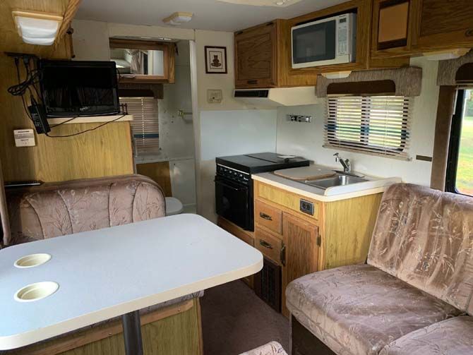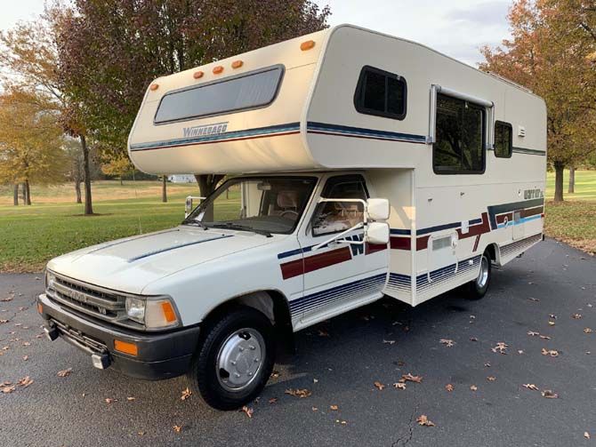 Based on the hard-to-find Toyota one-ton pickup truck (which was also used for U-Haul trucks), this 1992 Winnebago Warrior is smaller than your typical RV, but it's just as capable. This 21-foot RV is big enough for the family yet compact enough to fit anywhere, and it's powered by Toyota's reliable 3.0-liter V6. This particular example is the Winnebago Warrior's 321RB series, which means it features a 74-inch eating area that easily converts into a bed when needed.