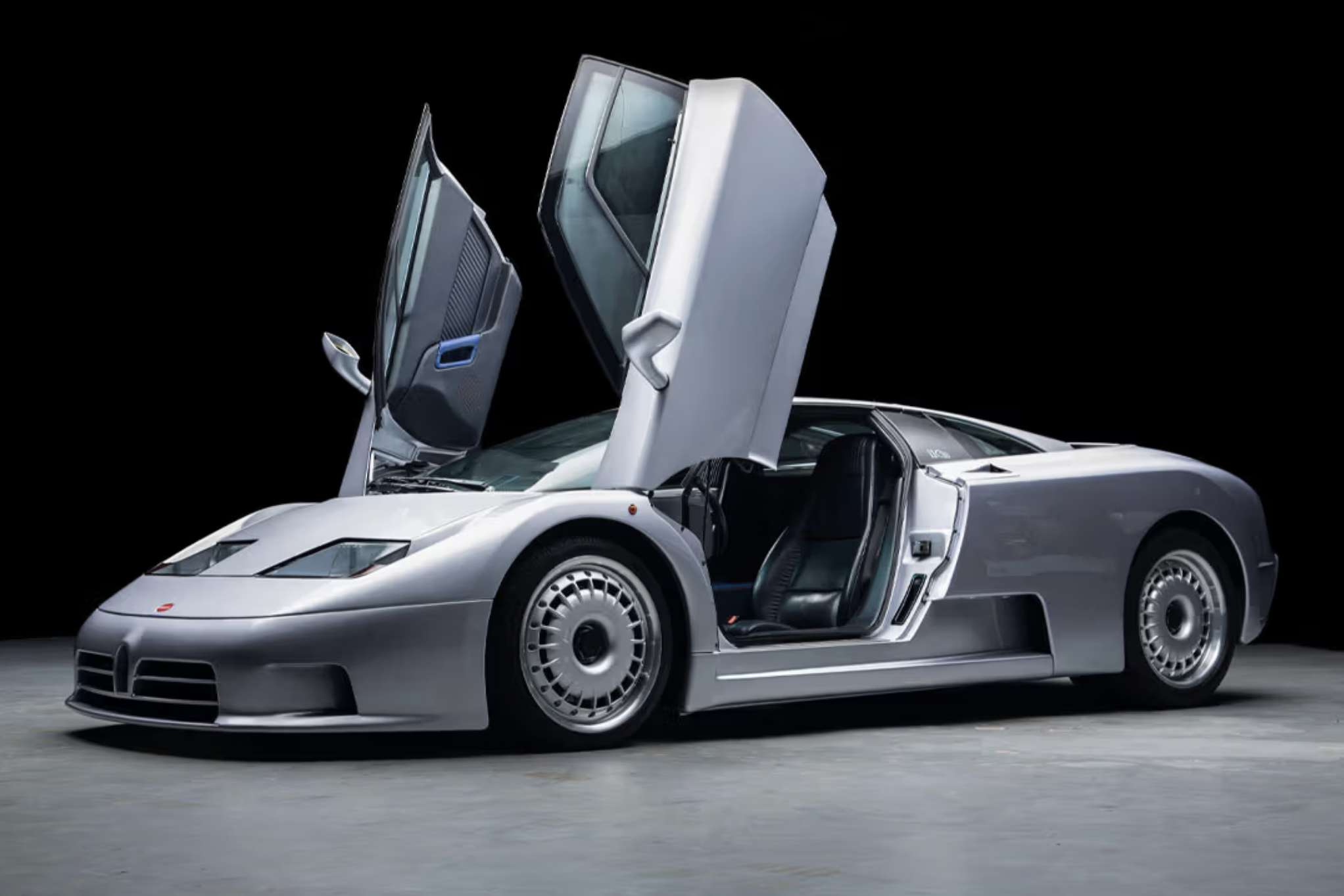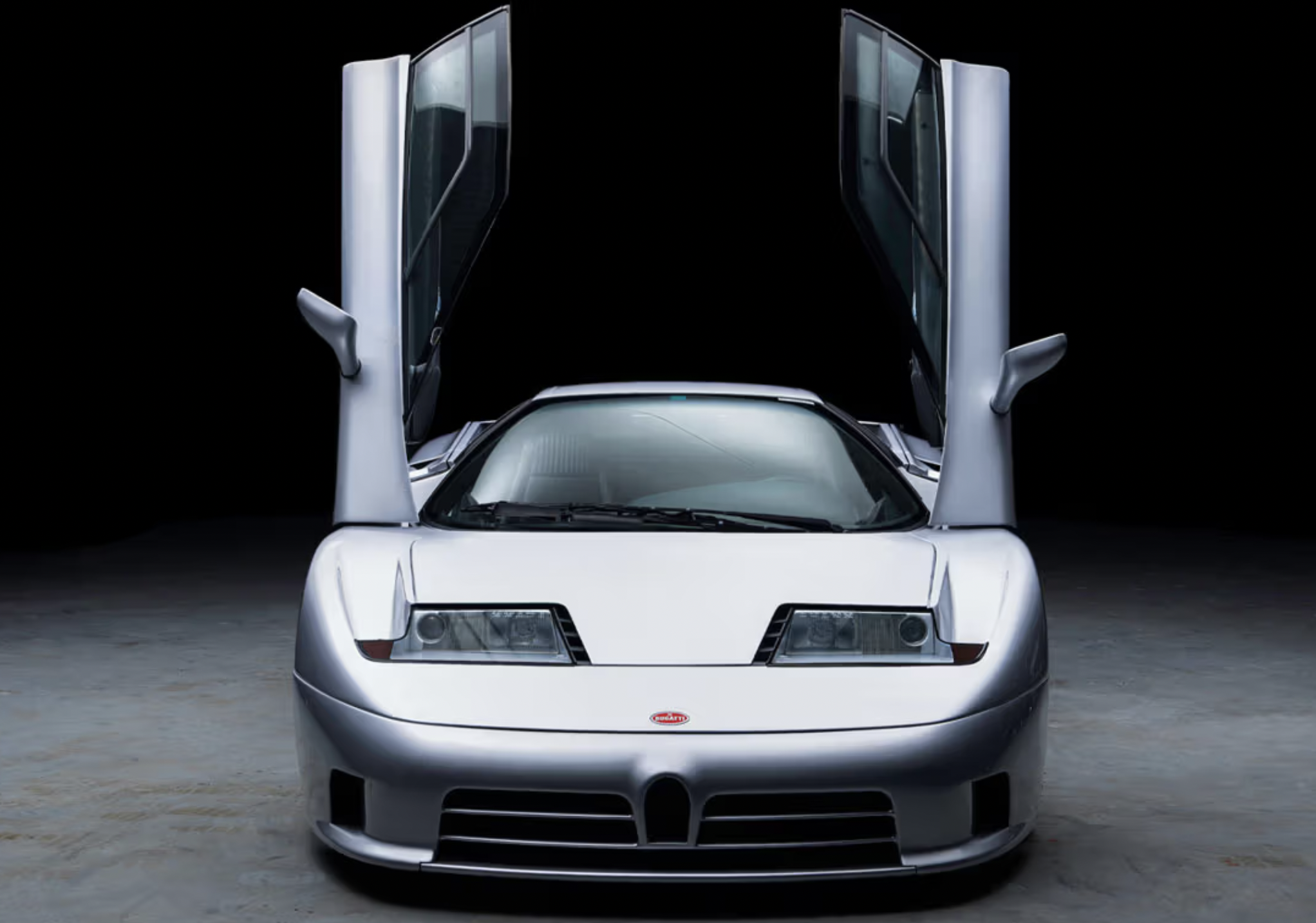 The car was developed during Bugatti’s ambitious return in the early ’90s under entrepreneur Romano Artioli. Its carbon fiber chassis was engineered by Aérospatiale, the same company known for contributing to the Concorde supersonic jet, and the sleek bodywork owes its design cues to famed Italian designers Marcello Gandini and Giampaolo Benedini.