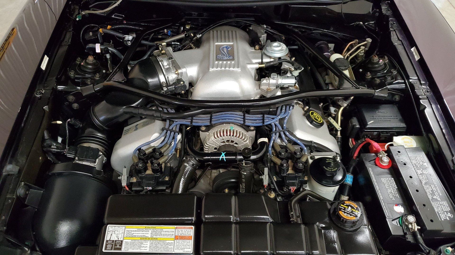1996 Cobras saw a major bump in performance thanks to a high-revving, all-aluminum DOHC V8. The engine block was cast in Italy by Teksid, the same company that manufactures parts for Ferrari, and each engine was hand-assembled by a pair of SVT employees, who signed a small sticker placed on the passenger side valve cover of each finished engine.