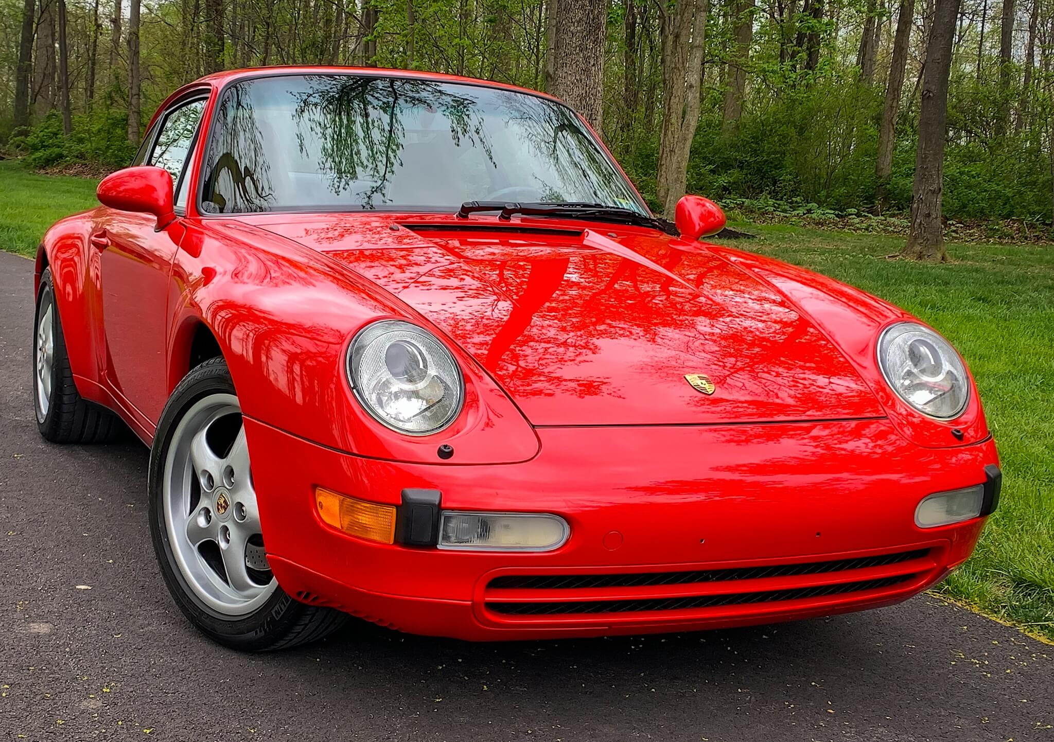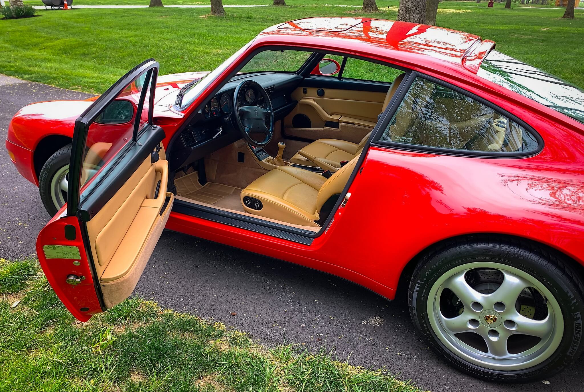 The vehicle in question is a 1996 Porsche 993 Carrera finished in a Guards Red paint job that strikes fear into the hearts of other European sports cars. German performance vehicles are famous for their over-engineering and thoughtful design. The well-kept exterior of this fiery car has an equally well-kept Cashmere Beige and Black interior.