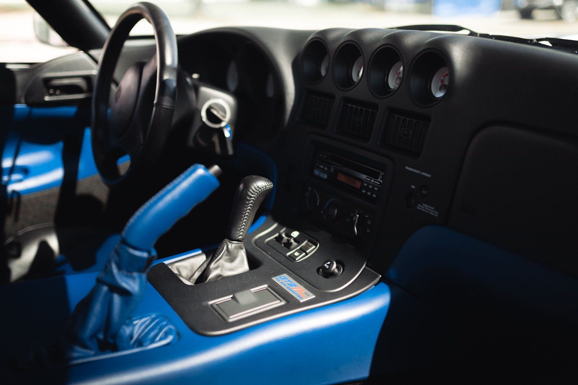 This car includes full documentation, including service history from new. It even includes the Viper-branded duffel bag these cars originally came with. In addition to the blue racing stripes, you'll find plenty of blue detailing inside the cabin, as well as an Alpine head unit and red Oreca-branded five-point seatbelts.